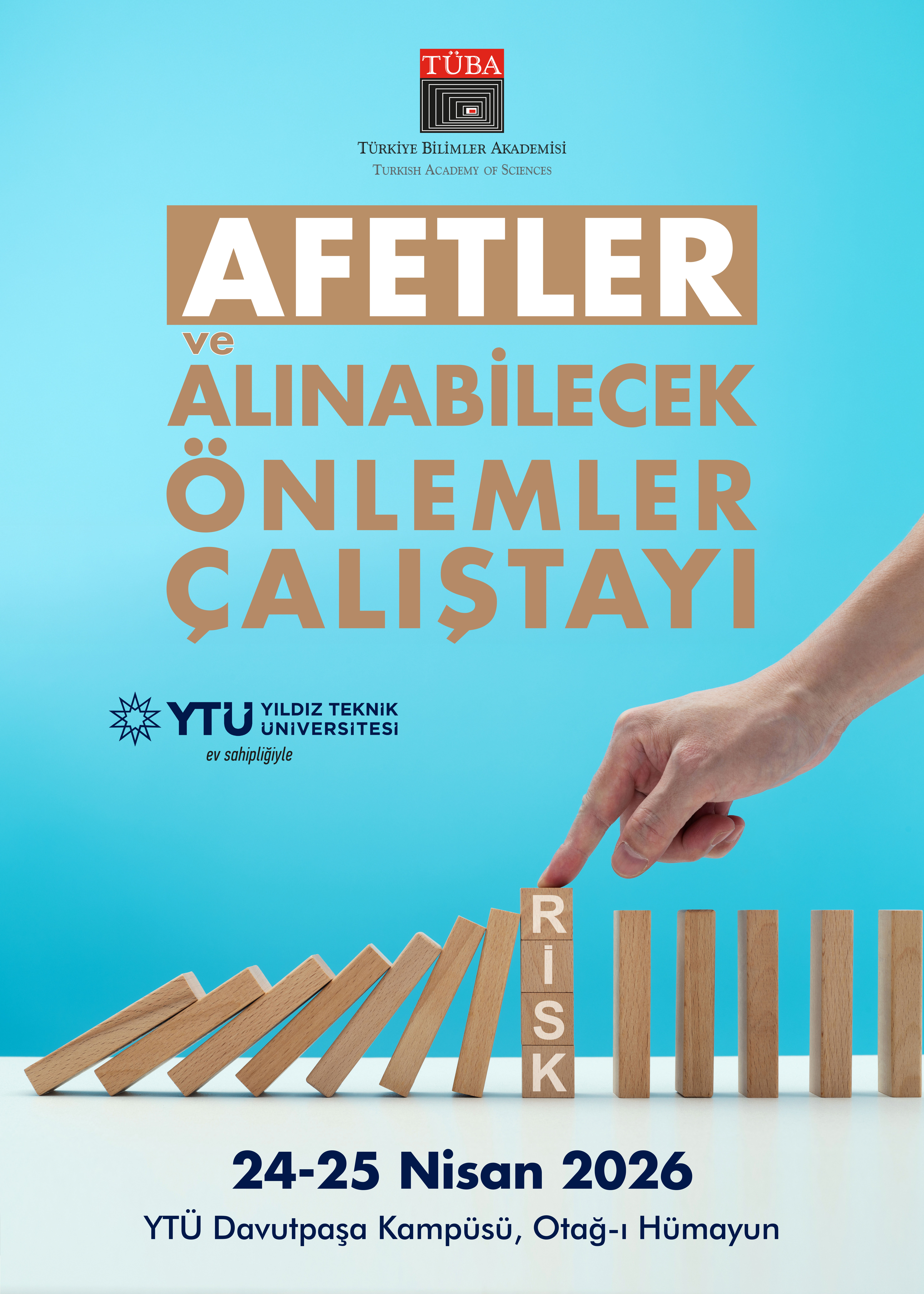 TÜBA, bilimsel araştırmaları teşvik etmek, bilimsel düşüncenin toplumda yaygınlaşmasına katkı sağlamak ve ülkemizin bilim politikalarına yön verecek stratejik değerlendirmeler geliştirmek amacıyla çalışmalarını sürdürüyor. Bu kapsamda Akademi tarafından programlanan “Afetler ve Alınabilecek Önlemler Çalıştayı”, Yıldız Teknik Üniversitesi (YTÜ) ev sahipliğinde 24-25 Nisan 2026 tarihlerinde gerçekleştirilecek.