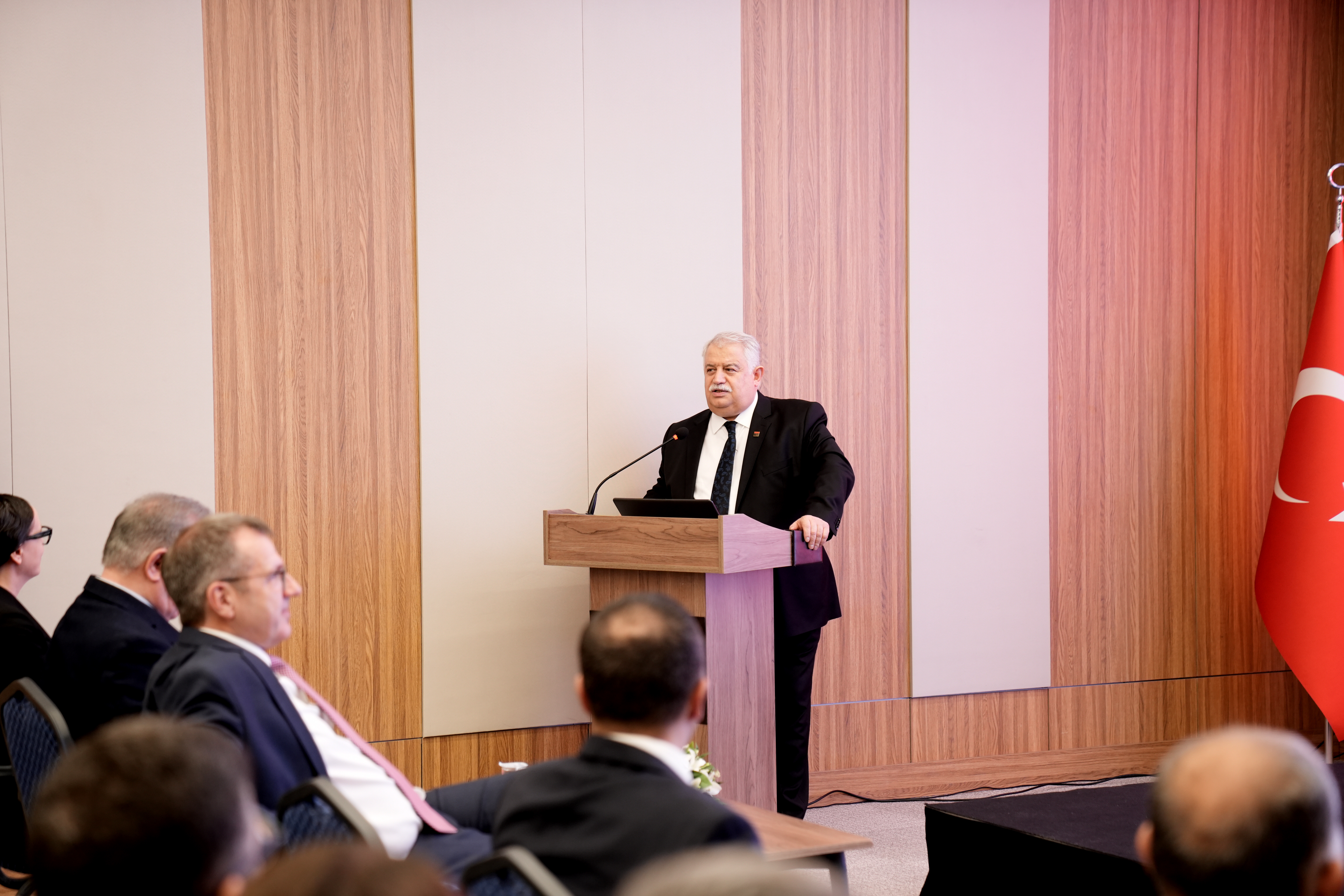 Başkan Şeker konuşmasında bu kalitenin ve uluslararası seviyenin en somut göstergelerinden birinin 2025 Nobel Kimya Ödülü’nü kazanan bilim insanlarından TÜBA Şeref Üyesi Prof. Dr. Omar Yaghi olduğunu vurguladı.
