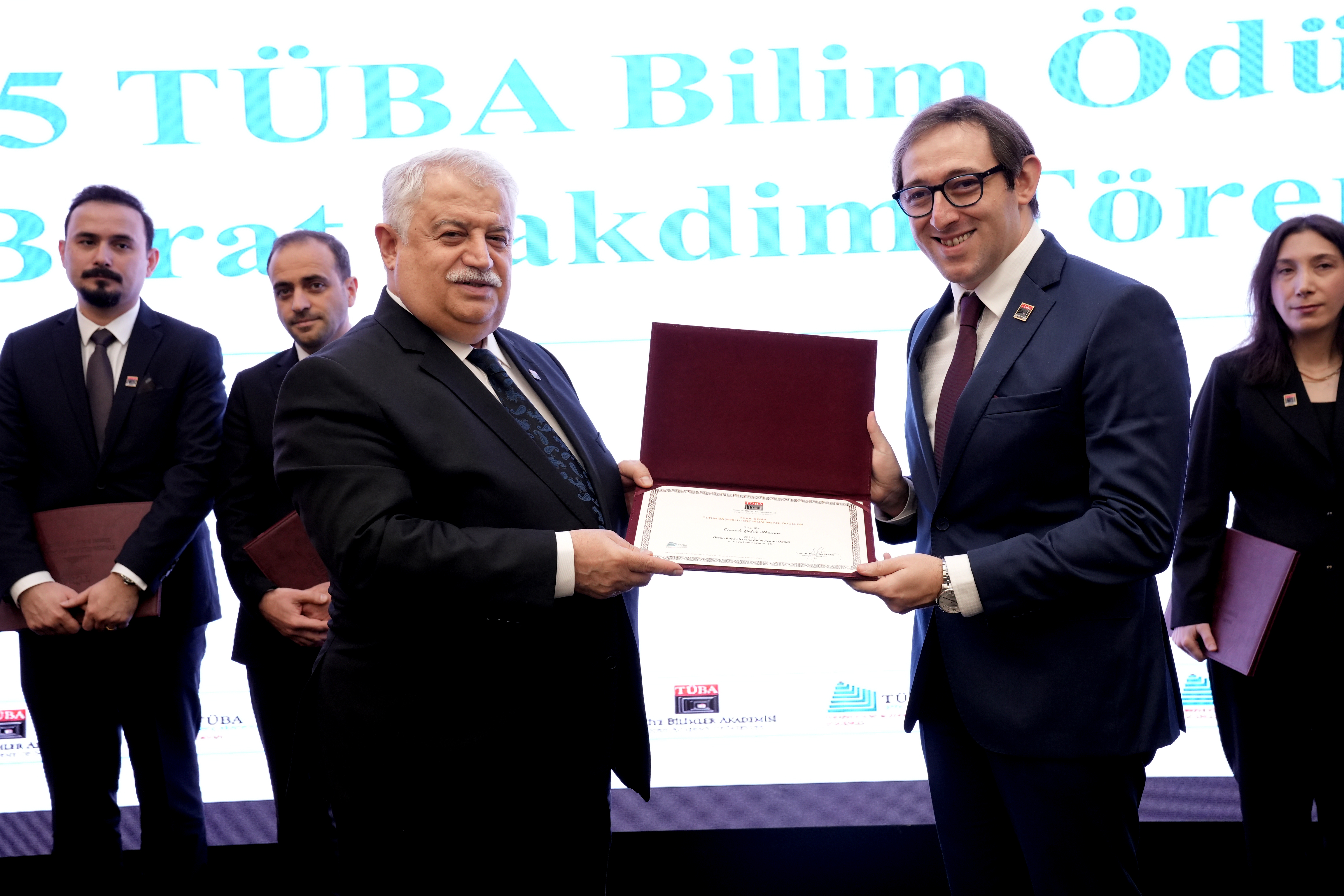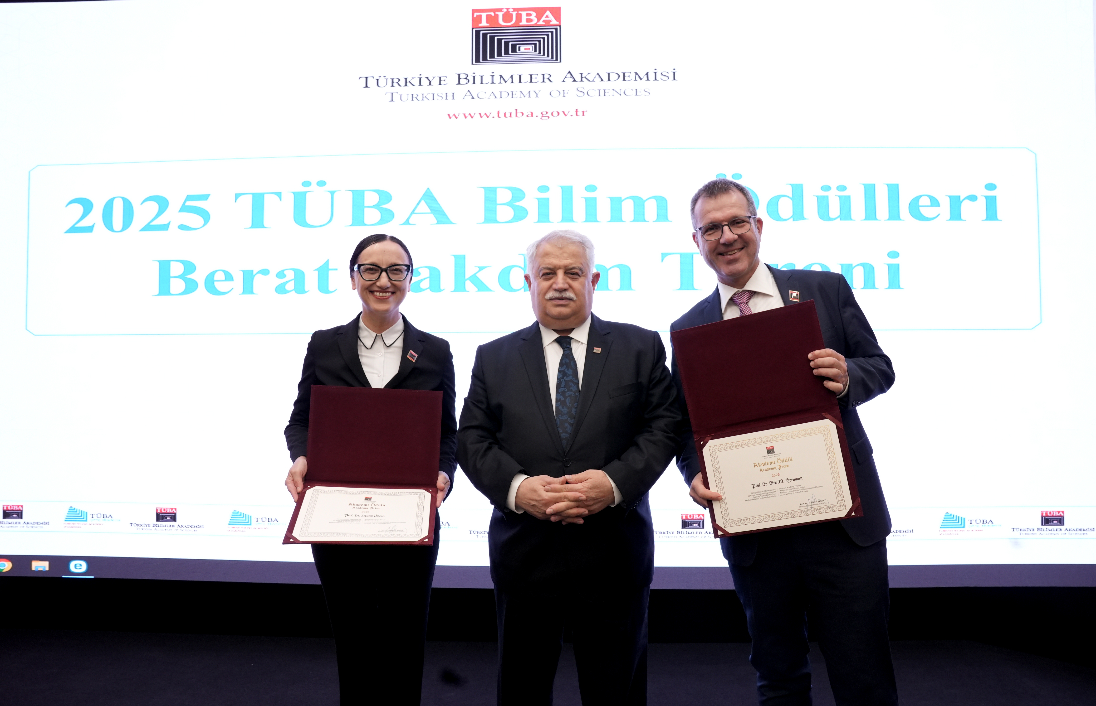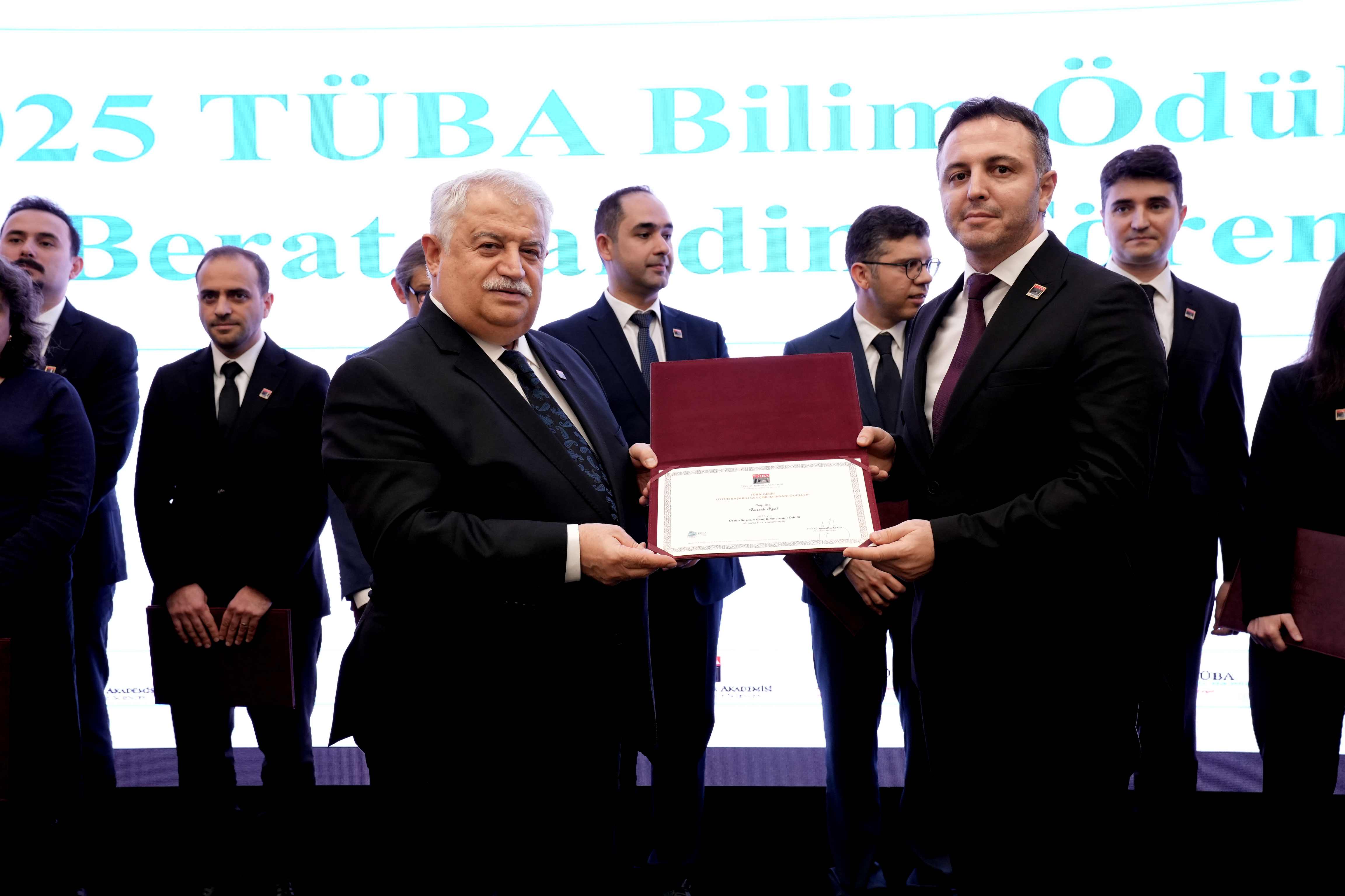 TÜBA'nın bilim insanlarını teşvik ve takdir misyonu kapsamında ihdas ettiği ve dünyadaki bütün bilim insanlarına açık olan 2025 yılı “TÜBA Uluslararası Akademi Ödülleri”ne Sağlık ve Yaşam Bilimleri kategorisinde Prof. Özcan Prof. Dr. Hermann’a verildi. TÜBA bilim insanlarını teşvik, takdir ve ödüllendirme misyonu kapsamında her yıl verilen TÜBA-GEBİP Ödülü’nü 2025 yılında; Ahmet ve Nezahat Keleşoğlu TÜBA-GEBİP Eczacılık Özel Ödülü de dahil 28 üstün başarılı genç bilim insanı kazandı. Böylece şimdiye kadar TÜBA-GEBİP Ödülü kazanan bilim insanı sayısı 697’ye yükseldi. TÜBİTAK Bilim ve Teşvik Ödülleri'ni ise 8 farklı üniversiteden 11 bilim insanı alırken; TÜBA Asli Üyesi Prof. Dr. Alper Kiraz'a TÜBİTAK Bilim Ödülü takdim edildi.