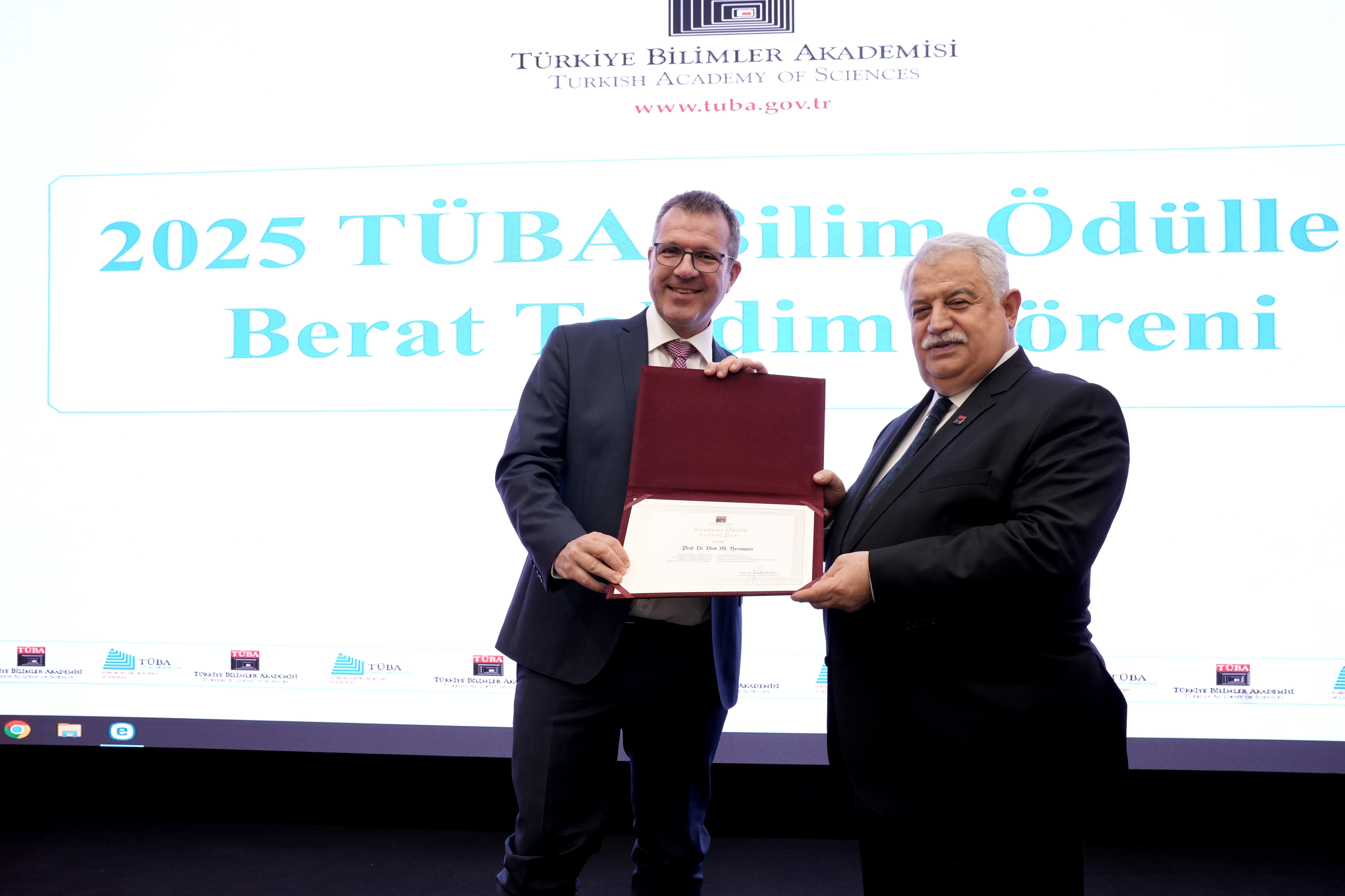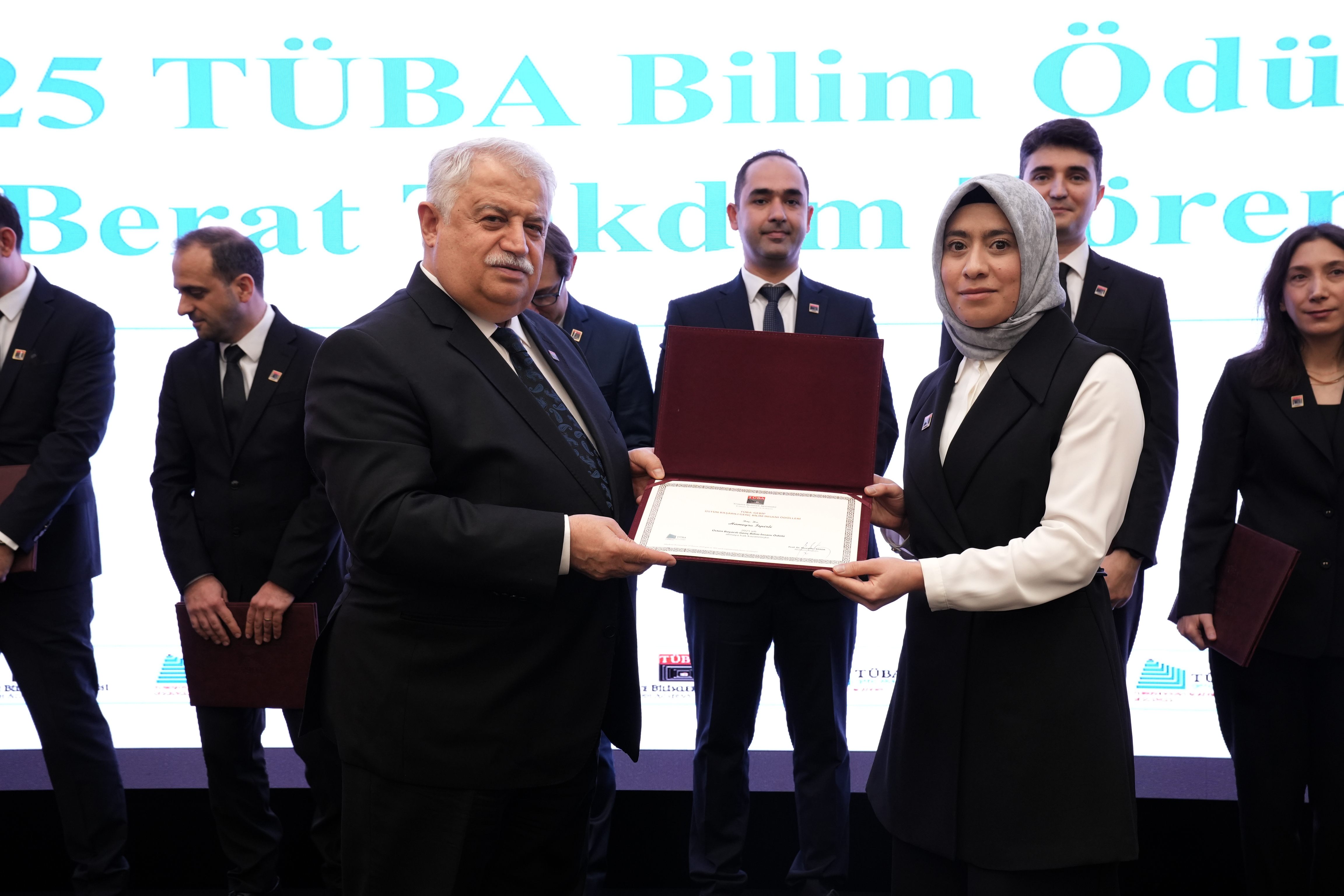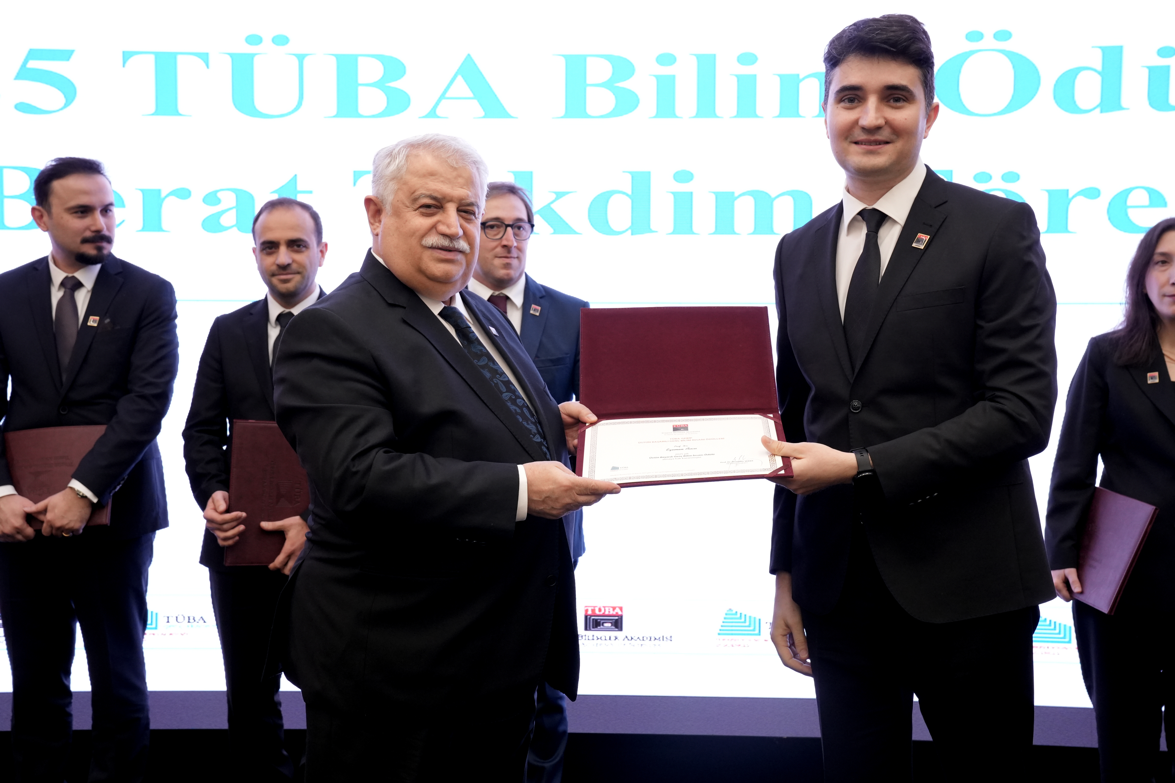 TÜBA'nın bilim insanlarını teşvik ve takdir misyonu kapsamında ihdas ettiği ve dünyadaki bütün bilim insanlarına açık olan 2025 yılı “TÜBA Uluslararası Akademi Ödülleri”ne Sağlık ve Yaşam Bilimleri kategorisinde Prof. Özcan Prof. Dr. Hermann’a verildi. TÜBA bilim insanlarını teşvik, takdir ve ödüllendirme misyonu kapsamında her yıl verilen TÜBA-GEBİP Ödülü’nü 2025 yılında; Ahmet ve Nezahat Keleşoğlu TÜBA-GEBİP Eczacılık Özel Ödülü de dahil 28 üstün başarılı genç bilim insanı kazandı. Böylece şimdiye kadar TÜBA-GEBİP Ödülü kazanan bilim insanı sayısı 697’ye yükseldi. TÜBİTAK Bilim ve Teşvik Ödülleri'ni ise 8 farklı üniversiteden 11 bilim insanı alırken; TÜBA Asli Üyesi Prof. Dr. Alper Kiraz'a TÜBİTAK Bilim Ödülü takdim edildi.