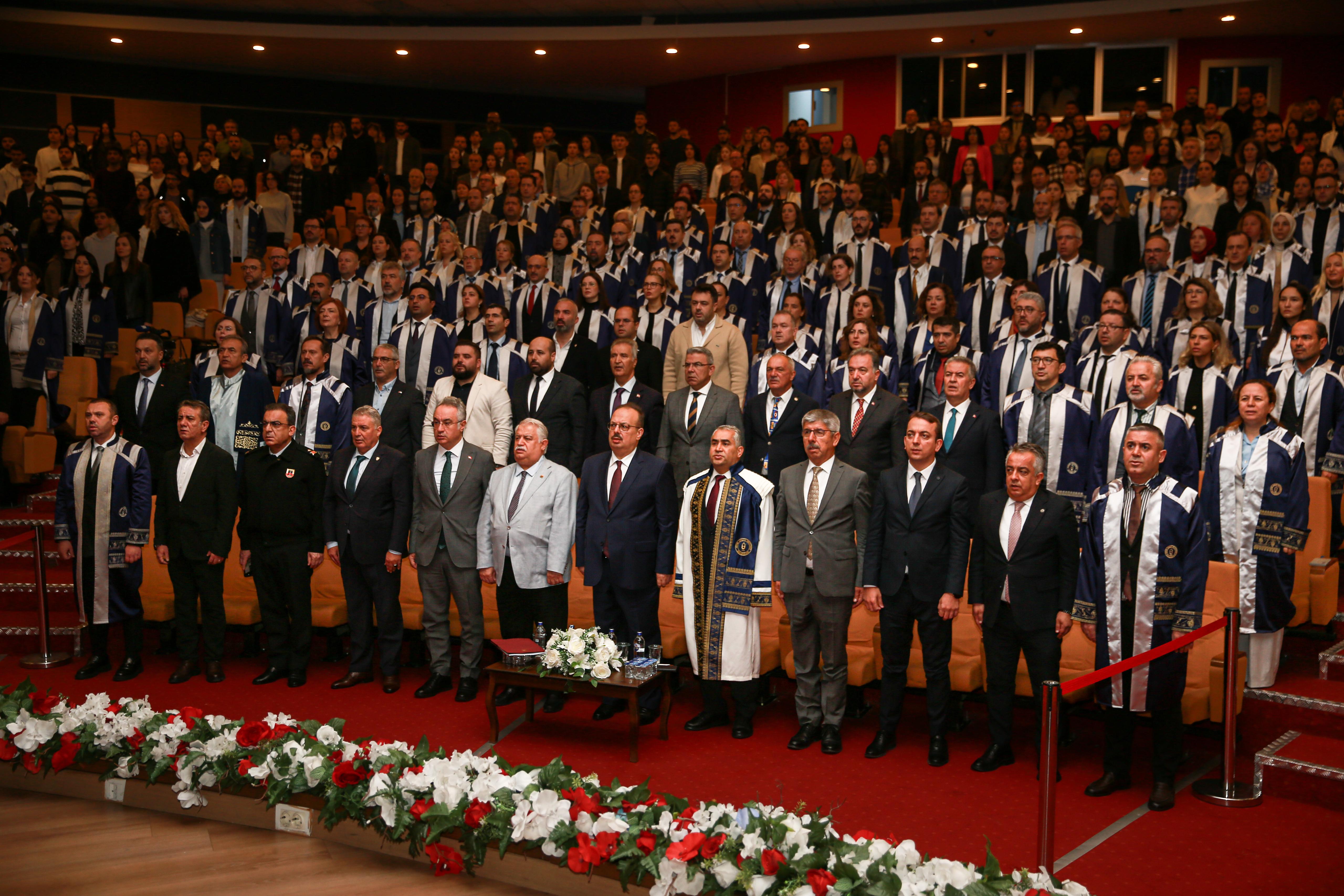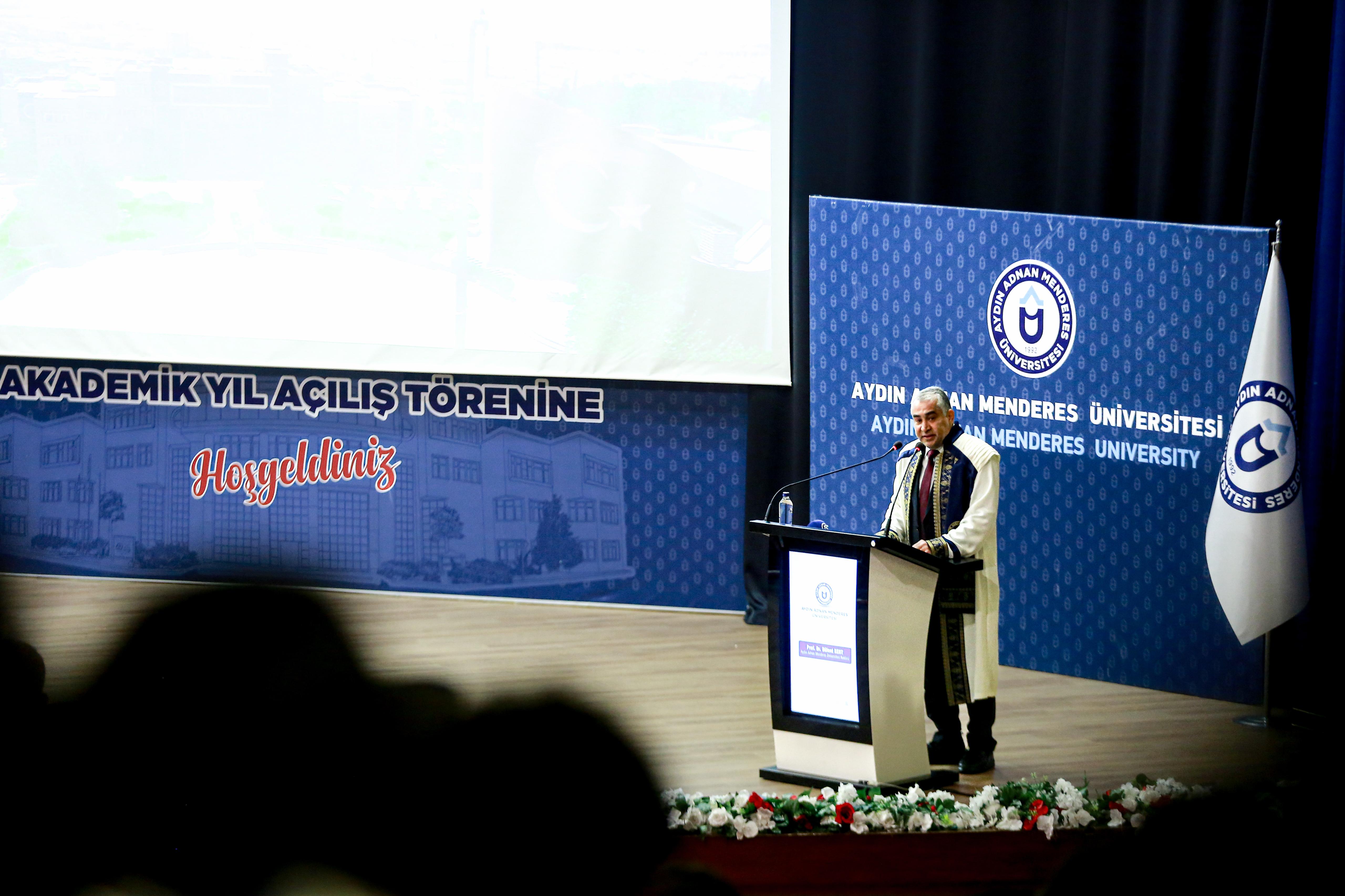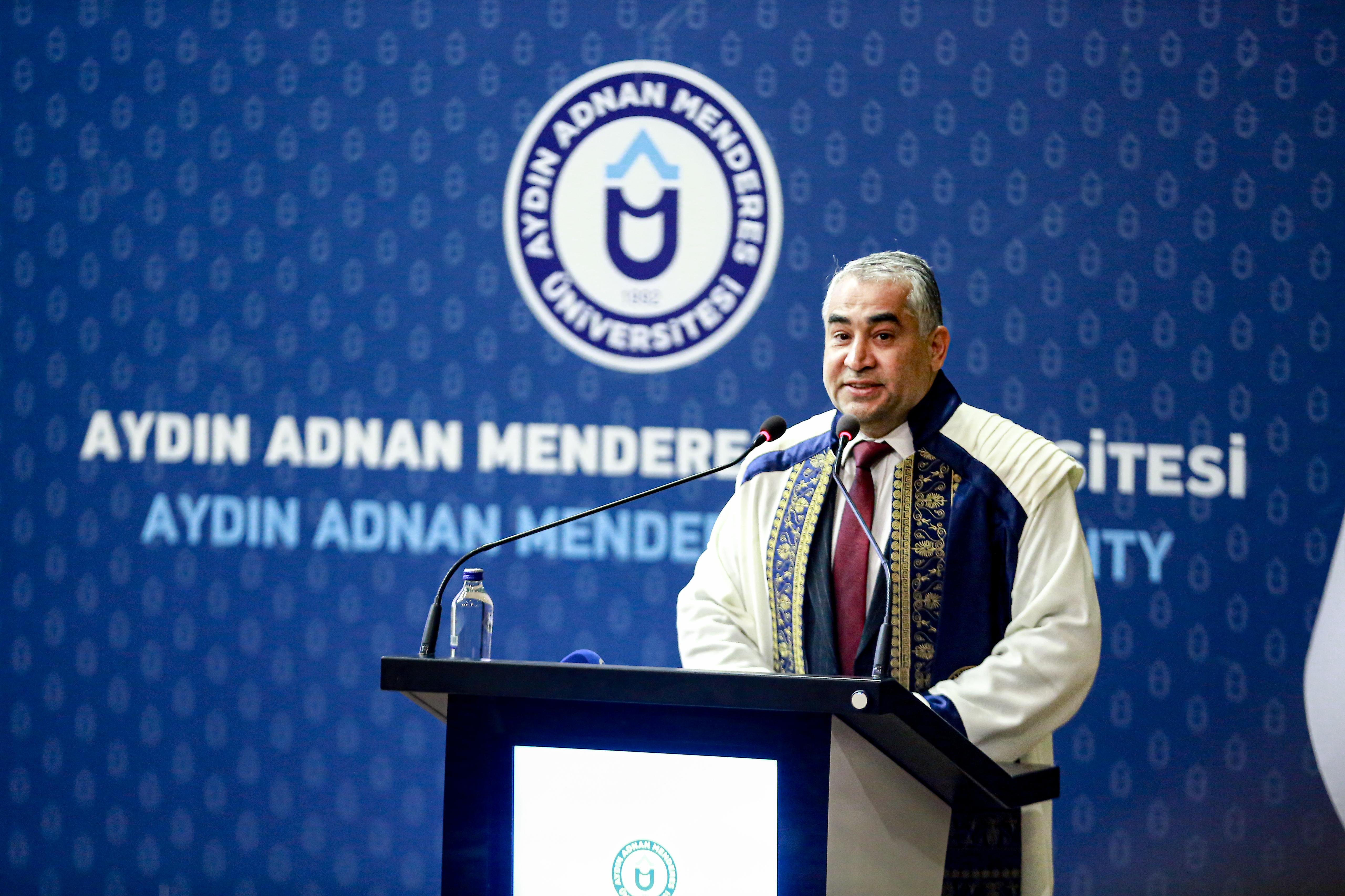 TÜBA Başkanı Prof. Dr. Muzaffer Şeker, Aydın Adnan Menderes Üniversitesi’nde (ADÜ) “Akademik Sorumluluklarımız ve Uluslararası Bilimsel Rekabet” başlıklı akademik yıl açılış dersi verdi.