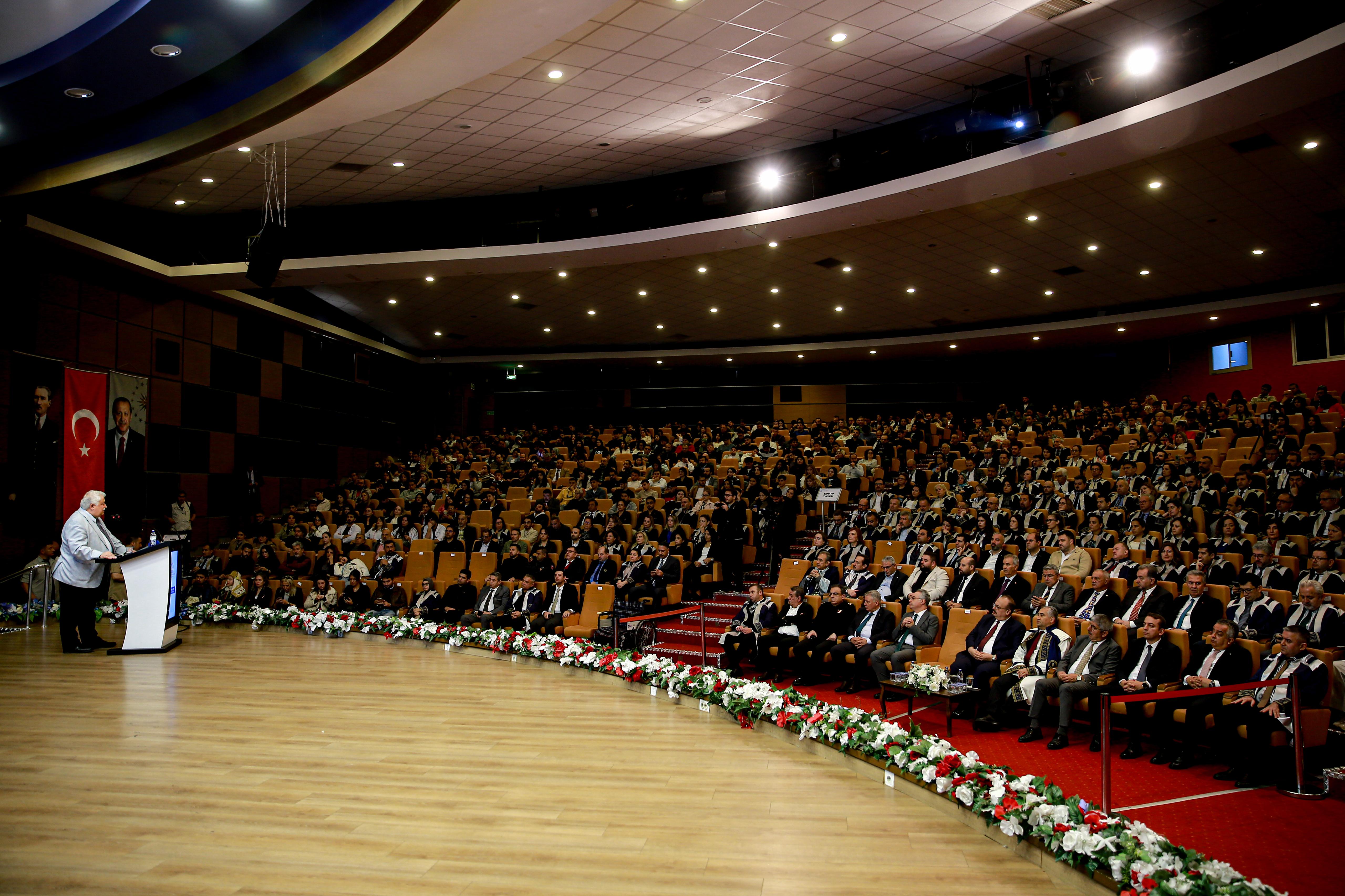 Prof. Şeker, konuşmasının önemli bir bölümünü yapay zekânın akademik yaşam üzerindeki etkilerine ayırdı. Yapay zekâ destekli metin üretiminde etik ihlaller, şeffaflık, intihal ve eşitsizlik risklerine dikkat çekti. UNESCO’nun “Yapay Zekâ Etiği Tavsiyeleri”nden örneklerle, teknolojinin insan merkezli ve sorumlu bir biçimde kullanılmasının gerekliliğini vurguladı. Eğitim, araştırma ve toplumsal katkının üniversiteleri üniversite yapan temel unsurlar olduğunu belirten Prof. Şeker, akademik etik, kalite ve nitelikli insan yetiştirme konularının Türkiye’nin geleceği açısından stratejik önem taşıdığını ifade etti. Depremler kadar “ahlak depremlerinin” de toplumda ciddi yıkımlar yarattığını belirterek, her bireyin kendi alanında sorumluluk bilinciyle hareket etmesi gerektiğini söyledi: “Deprem hasarının sadece jeolojik değil, ahlaki boyutlarını da düşünmemiz gerekiyor.”
