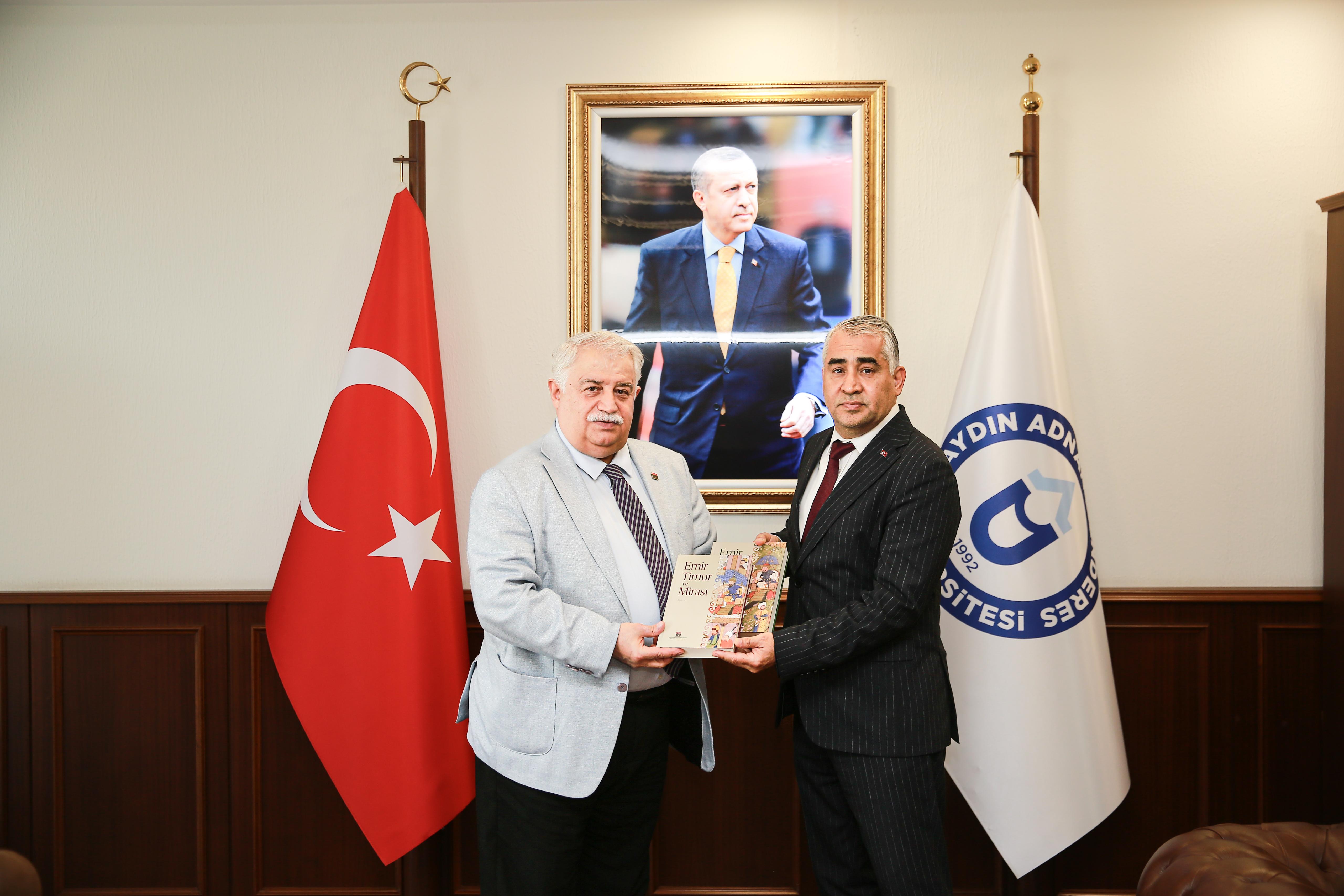 Programın ardından rektörlük makamında Aydın Valisi Yakup Canbolat ve akademisyenlerle bir araya gelen Başkan Şeker Prof. Kent’e TÜBA’nın son dönemde öne çıkan yayınlarından Science Diplomacy, Emir Timur ve Mirası ile The Historical Atlas of Turkic States adlı eserleri hediye etti.