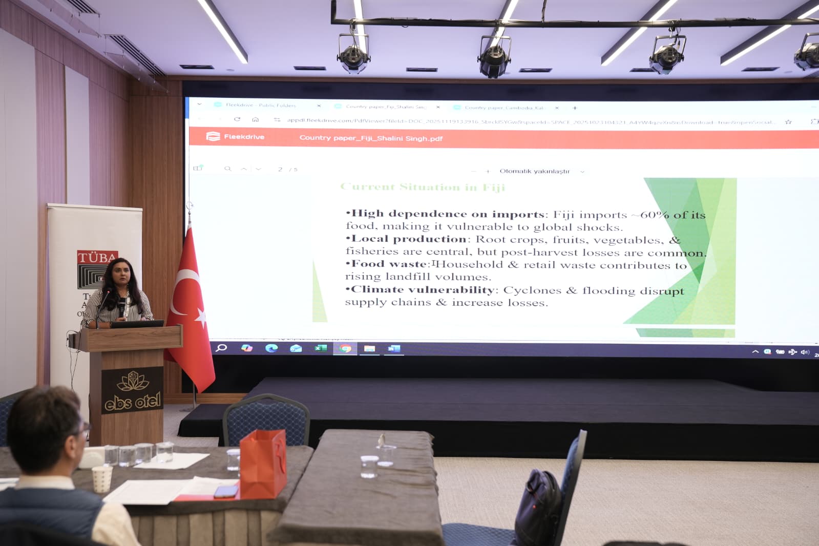 Dört gün süren uluslararası çalıştayın açılış konuşmalarını; Sanayi ve Teknoloji Bakanlığı Stratejik Araştırmalar ve Verimlilik Genel Müdürü ve AVT Ülke Direktörü Abdullah Başar, TÜBA Başkanı Prof. Dr. Muzaffer Şeker ve AVT Program Görevlisi Keiichi Sugita yaptı. Çalıştay, küresel gıda israfının yol açtığı sosyal, ekonomik ve çevresel sorunlara karşı AVT üyesi ülkeler arasında iş birliğini güçlendirmeyi ve sürdürülebilir gıda sistemleri için uygulanabilir politika ve teknoloji önerileri geliştirme hedefiyle programlandı. Kamboçya, Fiji, Endonezya, Laos Malezya, Moğolistan, Nepal, Hindistan, Japonya, Pakistan, Filipinler, Tayland, Tayvan, Sri Lanka, Vietnam ve Singapur’dan gelen kamu görevlileri, girişimciler, politika yapıcılar ve uzmanlar; gıda kalitesinin artırılması, iklim dirençli tarım, depolama altyapısı, yenilikçi işleme ve paketleme teknolojileri gibi çok sayıda alanda deneyimlerini paylaştı. Program boyunca gıda kaybı ve israfının farklı boyutları, ülkeler arası karşılaştırmalar, sürdürülebilir kalkınma göstergeleri üzerindeki etkiler, soğuk zincir ve depolama çözümleri, yeni iş modelleri, davranışsal ve toplumsal faktörler gibi pek çok başlık ele alındı. Ülkeler, kendi ulusal uygulamalarını sekizinci oturum kapsamında sundu; teknik geziyle yerinde incelemeler yapıldı