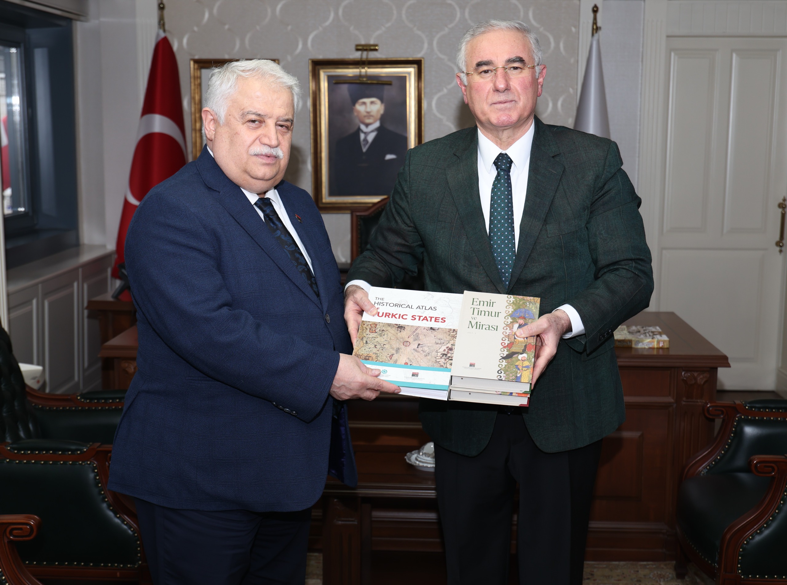 Görüşme kapsamında Prof. Dr. Muzaffer Şeker, Kamu Başdenetçisi Mehmet Akarca’ya TÜBA yayınlarından “Yapay Zekâ Hukuku ve Hukukta Dijitalleşme”, “The Historical Atlas of Turkic States” adlı eserin genişletilmiş son baskısı ile “Emir Timur ve Mirası” kitabının ikinci baskısını takdim etti.