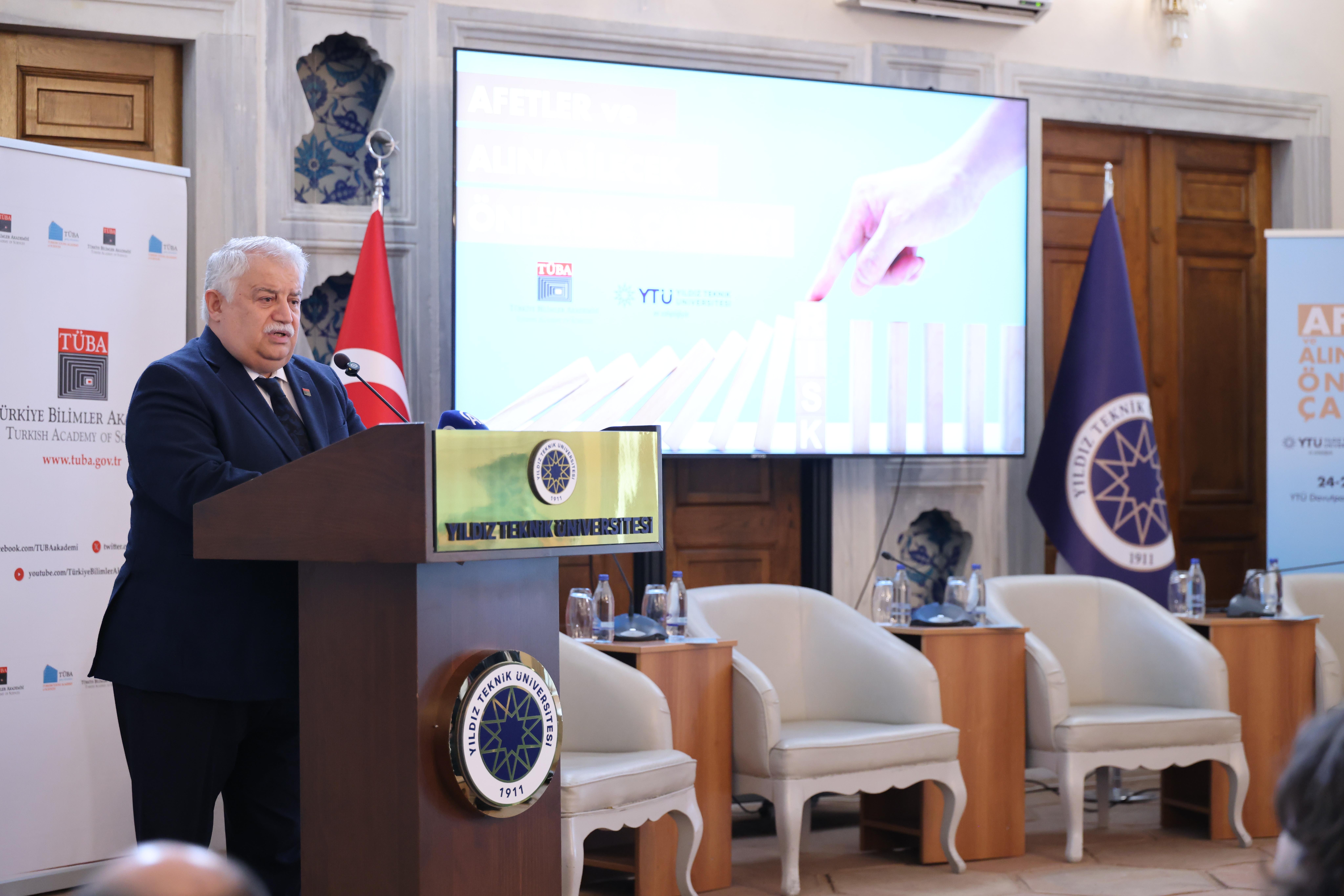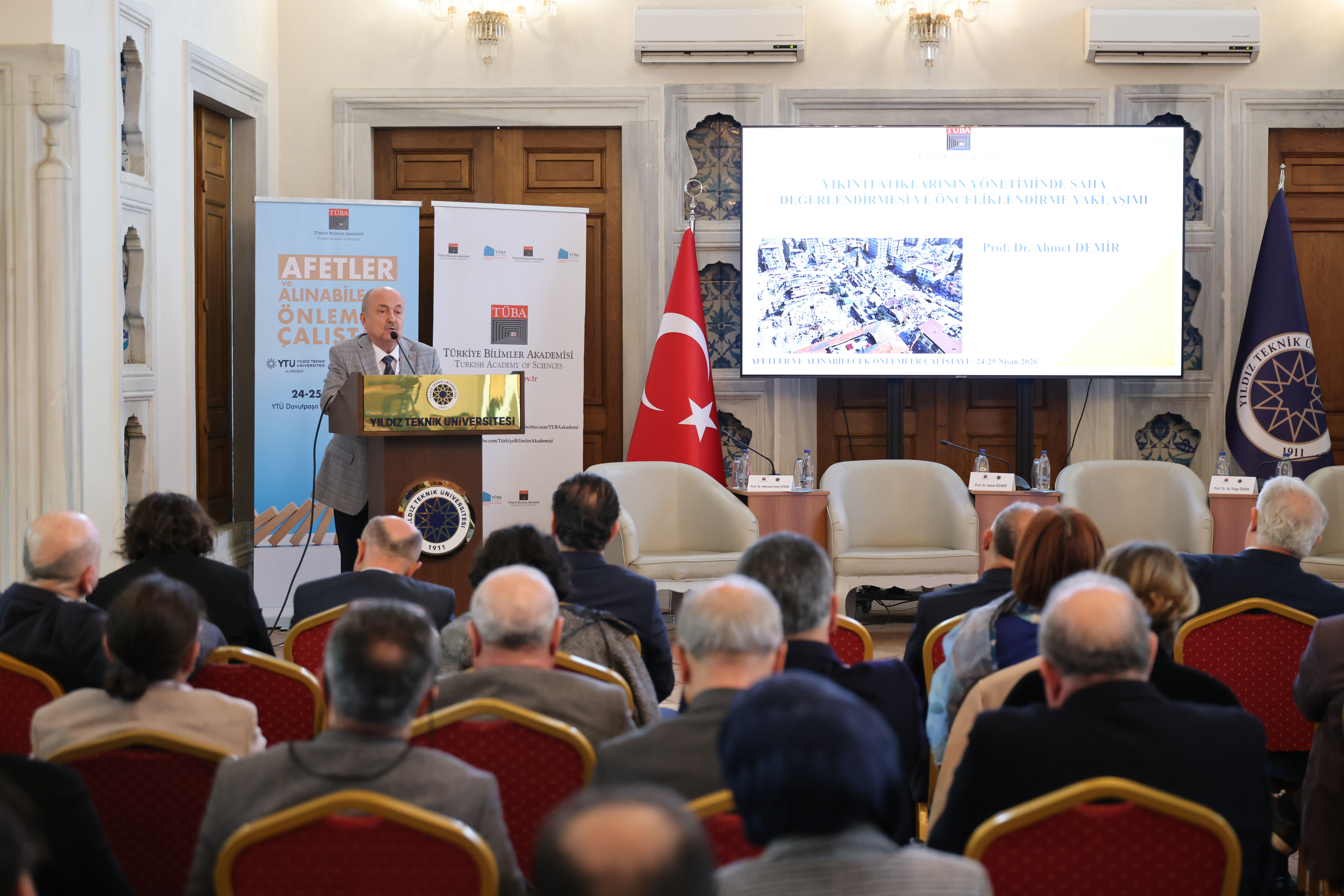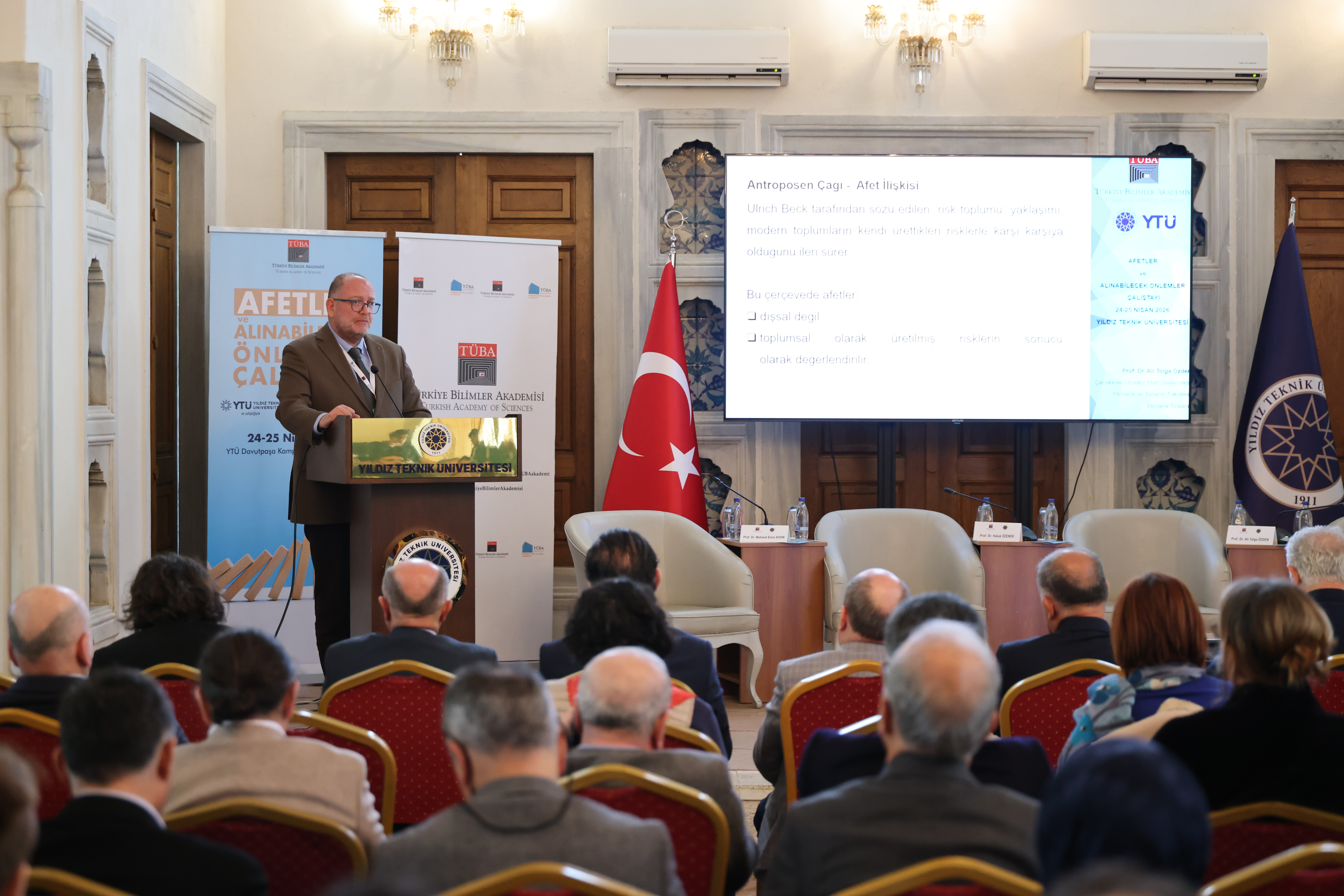 TÜBA, bilimsel araştırmaları teşvik etmek, bilimsel düşüncenin toplumda yaygınlaşmasına katkı sağlamak ve ülkenin bilim politikalarına yön verecek stratejik değerlendirmeler geliştirmek amacıyla çalışmalarını sürdürüyor. Bu kapsamda Akademi tarafından programlanan ve iki gün sürecek “Afetler ve Alınabilecek Önlemler Çalıştayı”, Yıldız Teknik Üniversitesi (YTÜ) ev sahipliğinde başladı.