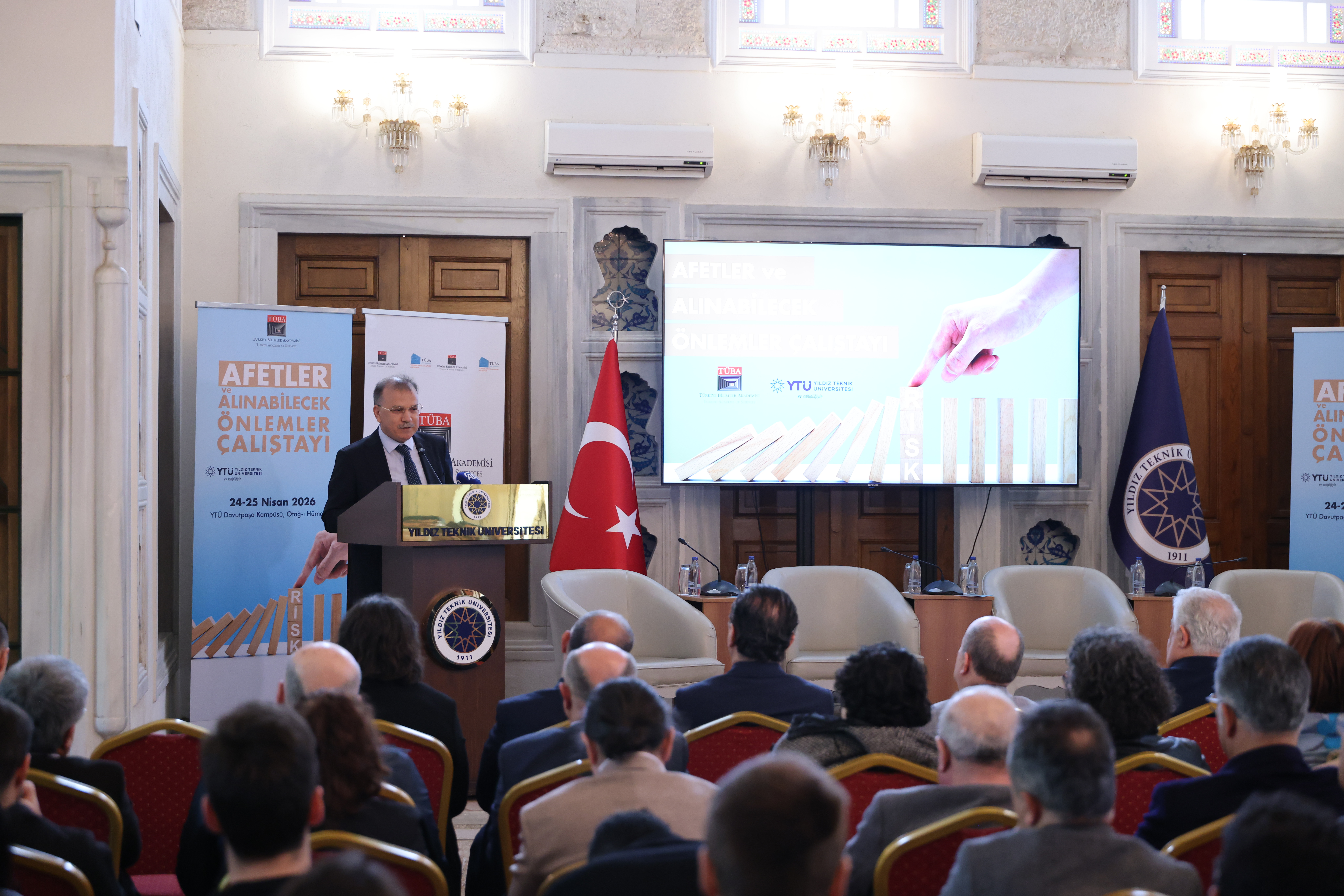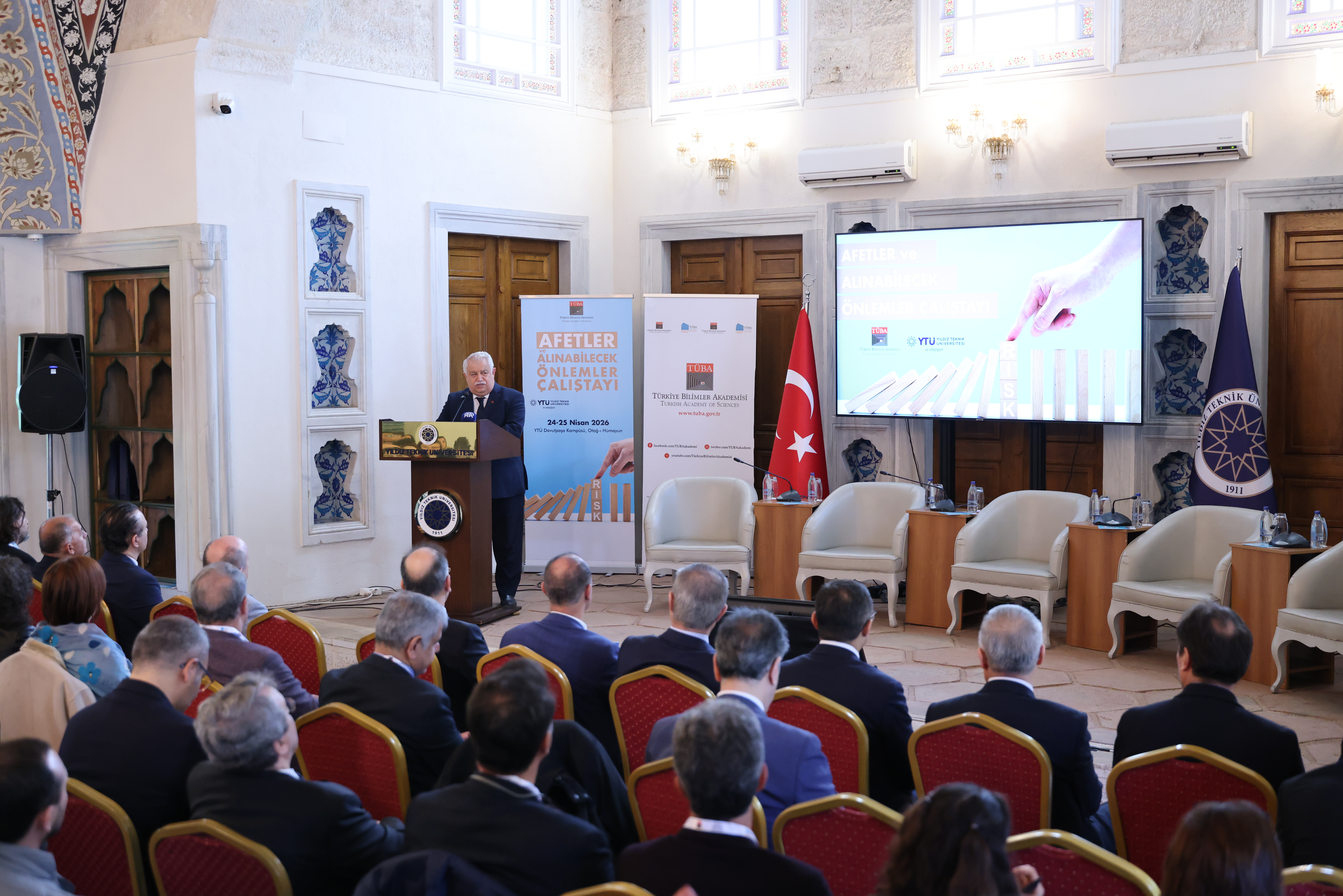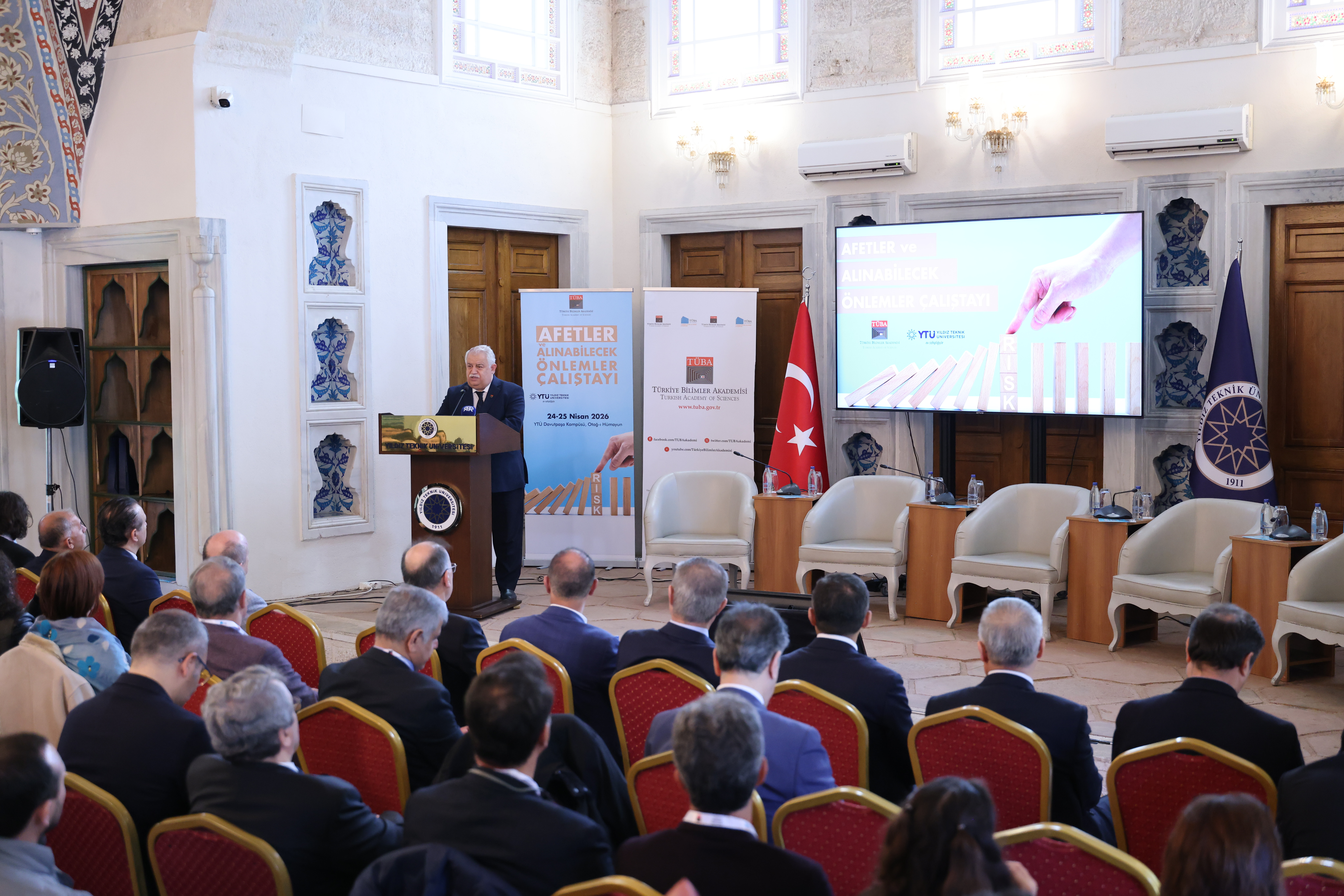 TÜBA, bilimsel araştırmaları teşvik etmek, bilimsel düşüncenin toplumda yaygınlaşmasına katkı sağlamak ve ülkenin bilim politikalarına yön verecek stratejik değerlendirmeler geliştirmek amacıyla çalışmalarını sürdürüyor. Bu kapsamda Akademi tarafından programlanan ve iki gün sürecek “Afetler ve Alınabilecek Önlemler Çalıştayı”, Yıldız Teknik Üniversitesi (YTÜ) ev sahipliğinde başladı.