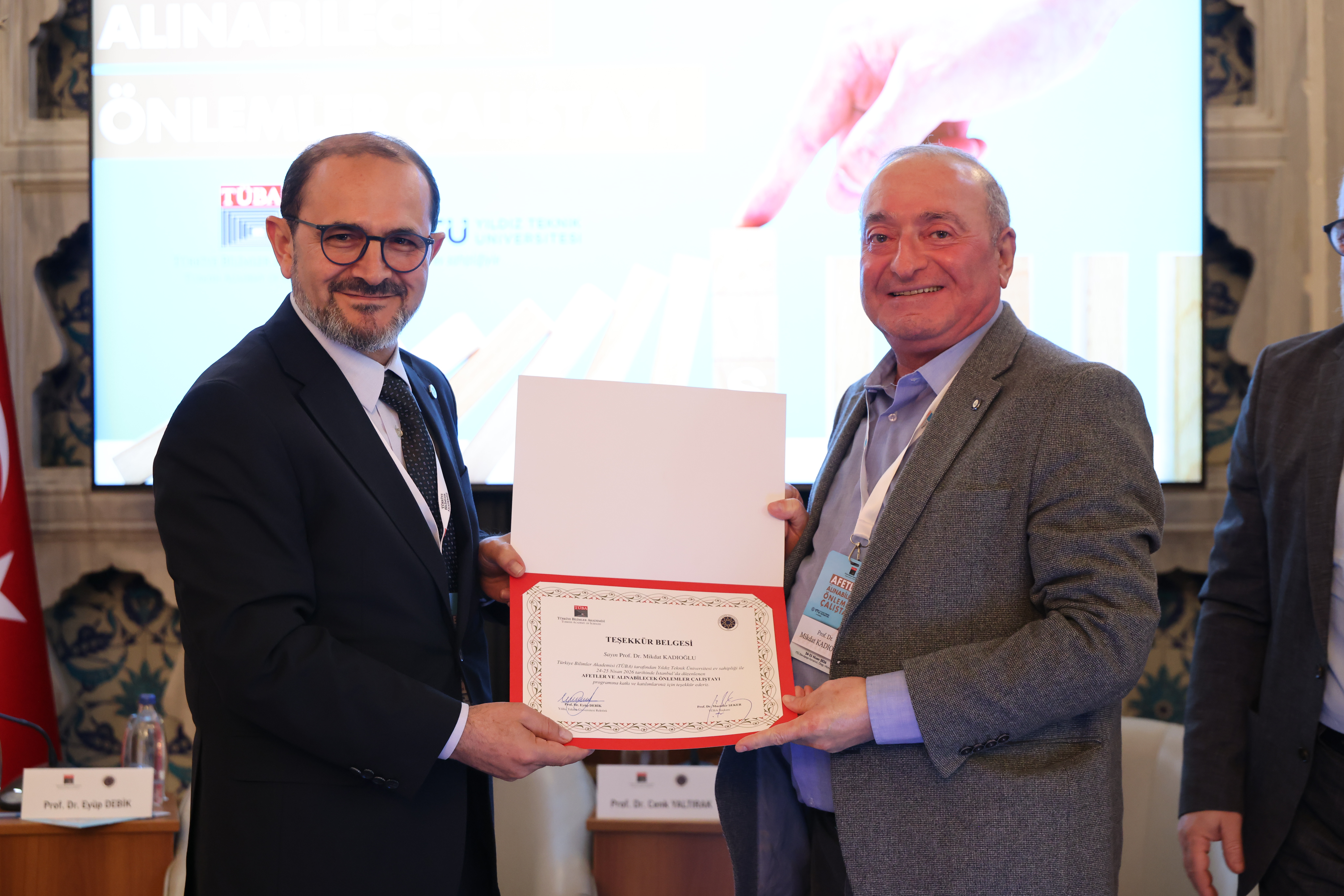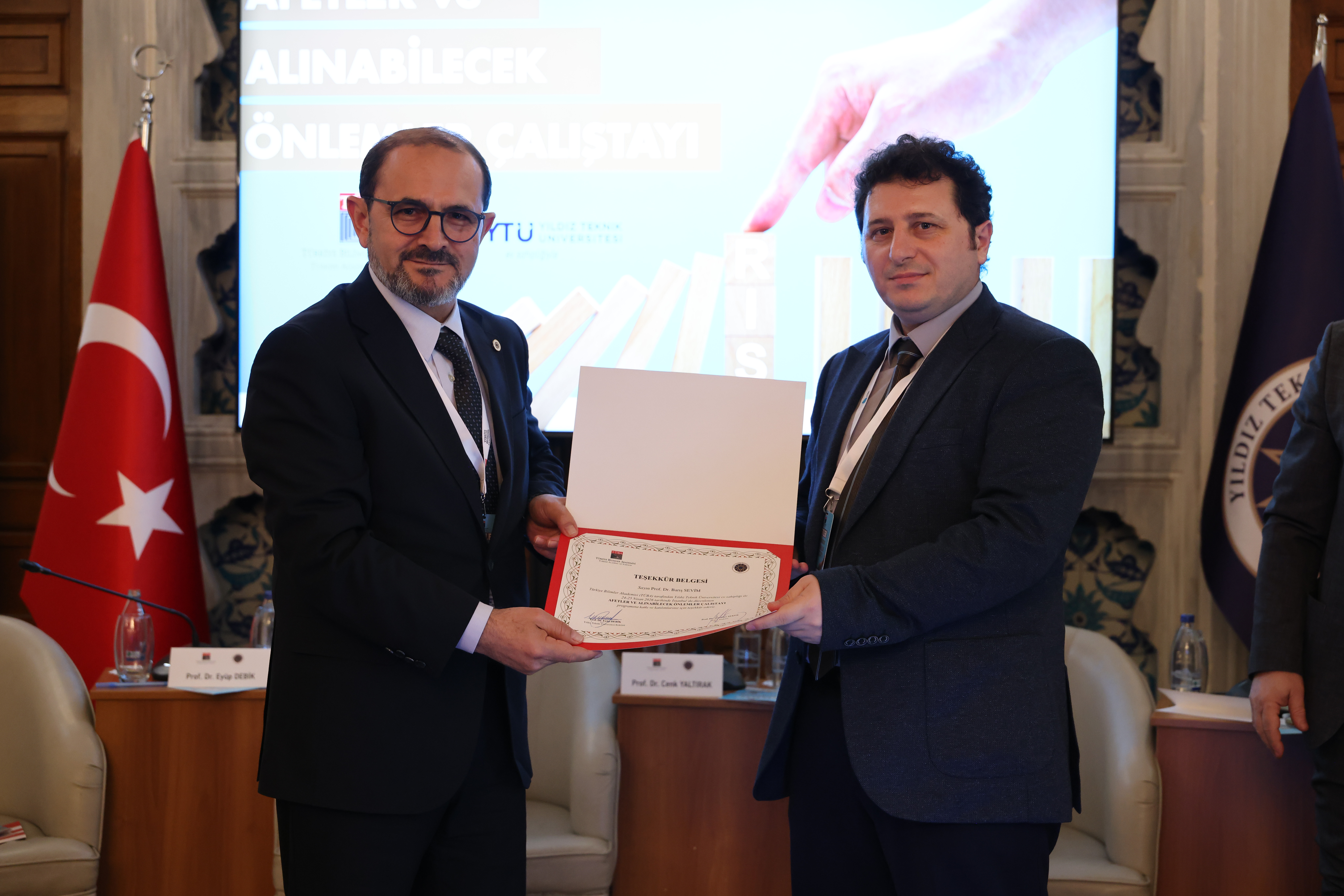 YTÜ Rektör Yardımcısı Prof. Dr. Vatan Karakaya ise üniversitenin afetler alanında hem akademik hem de teknolojik kapasitesiyle kapsamlı çalışmalar yürüttüğünü belirtti. Afet risklerinin azaltılması, yönetimi ve afet teknolojilerinin geliştirilmesine yönelik çok disiplinli araştırmalar, saha tespitleri ve hasar analizleri gerçekleştirdiklerini ifade eden Karakaya; özellikle 6 Şubat depremleri sonrası saha çalışmalarının yoğunlaştığını, geçici barınma sistemleri, altyapı yönetimi ve yapay zekâ tabanlı karar destek araçları geliştirdiklerini söyledi. Yıldız Teknopark bünyesinde erken uyarı sistemleri, yapay zekâ destekli hasar tespiti, İHA tabanlı iletişim altyapıları ve sensör tabanlı yapı izleme teknolojileri gibi yenilikçi çözümlerin geliştirildiğini belirten Karakaya, afetlere hazırlıkta teknoloji ve eğitimin birlikte ilerlemesi gerektiğini vurguladı.