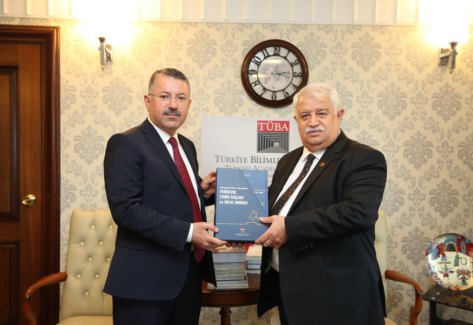 Başkan Şeker ve Prof. Kırışık görüşmede fikir alış verişinde bulundu. Başkan Şeker, Prof. Kırışık’a, TÜBA Üyesi Prof. Dr. İzzet Özgenç editörlüğünde hazırlanan ve Akademi tarafından 2024 yılında yayımlanan “Terörizm, Terör Suçları ve İnfaz Hukuku” adlı eseri hediye etti.