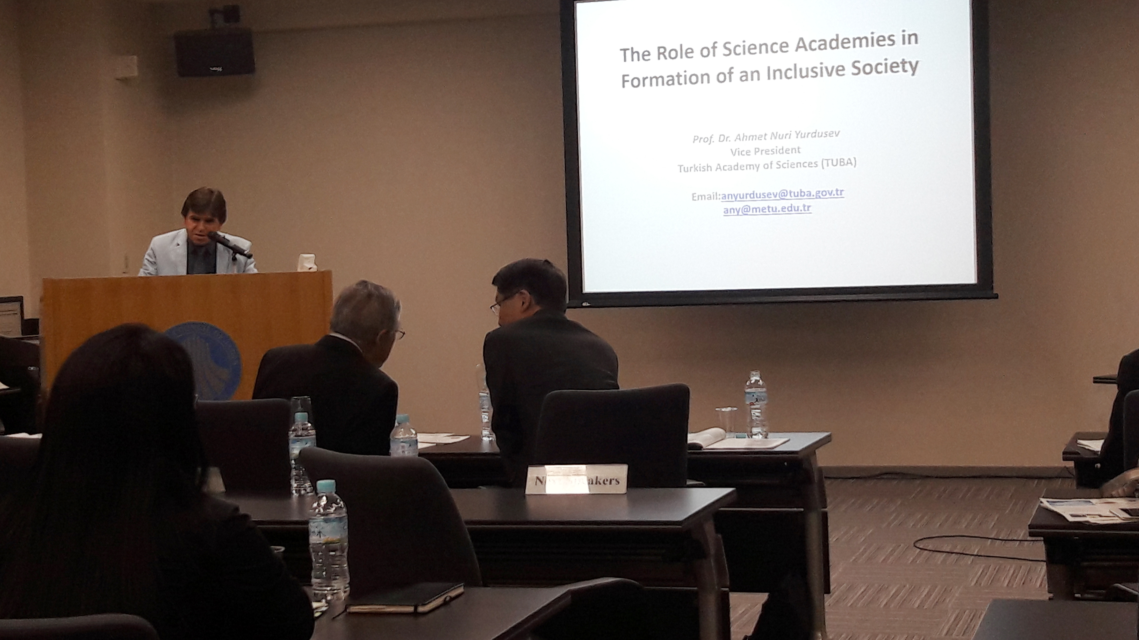 Asya Bilim Akademileri Birliği (Association of Academies and Societies of Sciences in Asia-AASSA) ve Japon Bilim Konseyi (Science Council of Japan-SCJ) tarafından 1-3 Mart 2017 tarihinde düzenlenen, InterAcademy Partnership’in (IAP) de destek verdiği "Kapsayıcı Toplum için Bilimin Rolü Çalıştayı”na TÜBA’yı temsilen Akademi Başkan Yardımcısı Prof. Dr. Ahmet Nuri Yurdusev ve TÜBA Asli Üyesi Prof. Dr. Kazım Şahin katıldı.