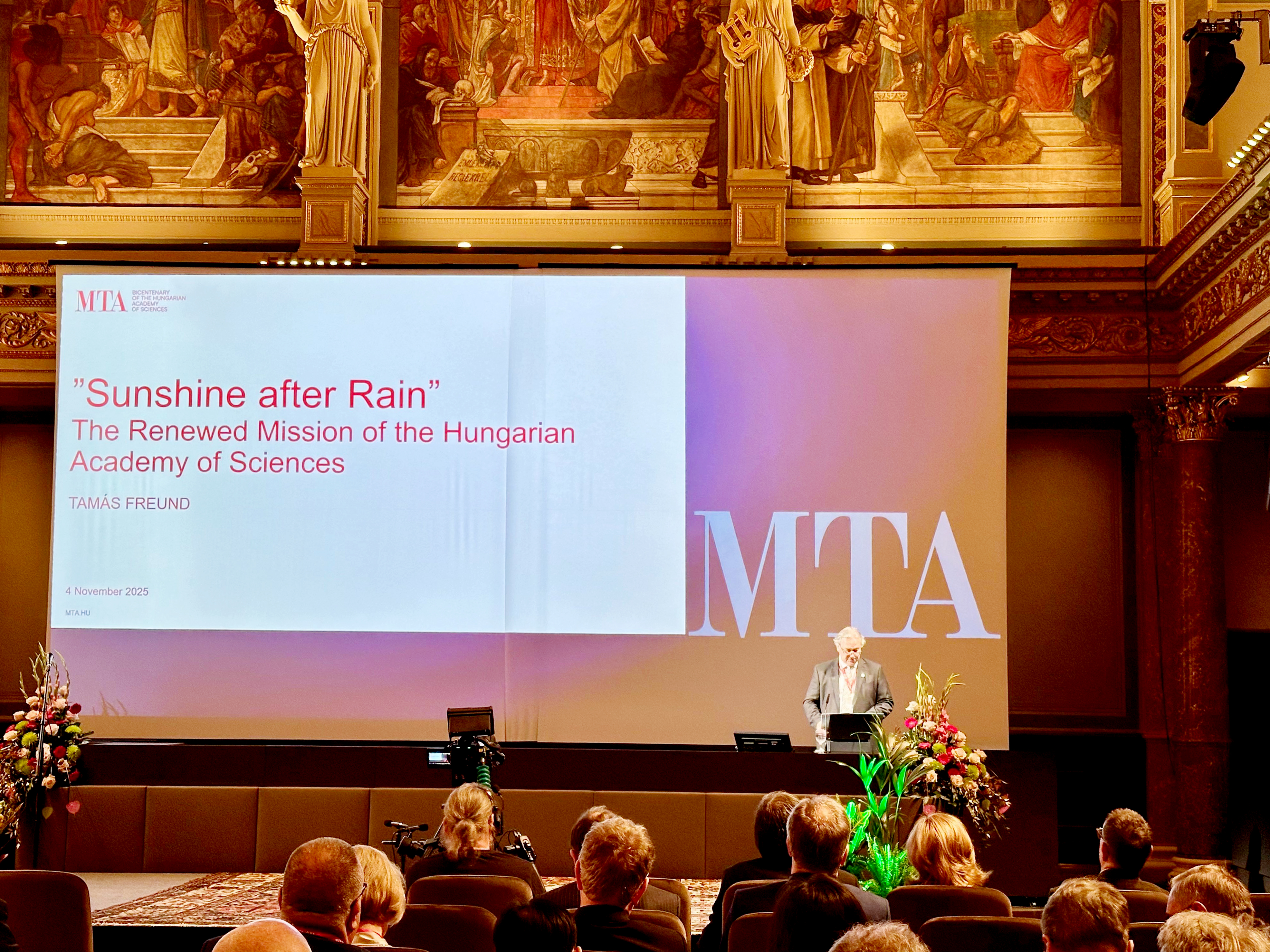 Etkinlik programının açılışında konuşan MTA Başkanı Prof. Dr. Tamás Freund, bilimin toplumsal gelişmedeki rolünü ve akademilerin bu süreçteki liderliğinin altını çizdi.