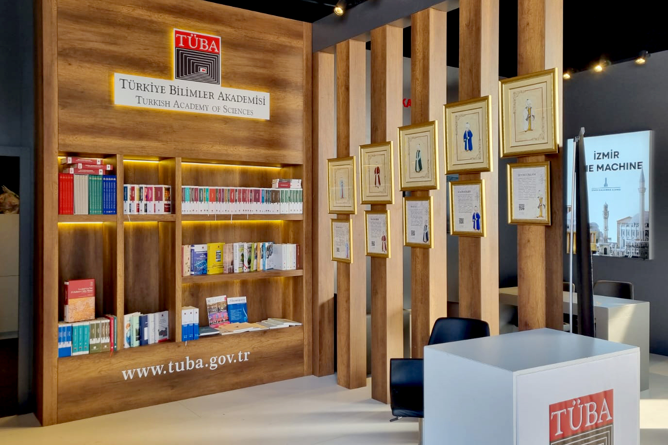 TÜBA standında Akademi tarafından yayımlanan; tarihten sağlık bilimlerine, etimolojik sözlükten bilim terimleri sözlüğüne, küresel salgından Osmanlı bilim insanlarının kıyafet normuna pek çok eserin yanı sıra su ihtiyacından enerjiye, çevre sorunlarından gıda tedariğine Türkiye’nin güncel sorunları konusunda hazırladığı raporlar da okuruyla buluştu. Diğer yandan TEKNOFEST İstanbul'da olduğu gibi İzmir'de de; Türk Patent ve Marka Kurumu ve İzmir Olgunlaşma Enstitüsü'nün katkılarıyla TÜBA standında Osmanlı İlmiye sınıfının giydiği kıyafetler ziyaretçilerin ilgisine sunuldu. TÜBA Başkanı Prof. Dr. Muzaffer Şeker, bilim meraklısı çocuklarla özellikle ilgilenirken, TEKNOFEST kapsamında yer alan pek çok üniversite ve bilim kuruluşunun stantlarını ziyaret ederek destek verdi.