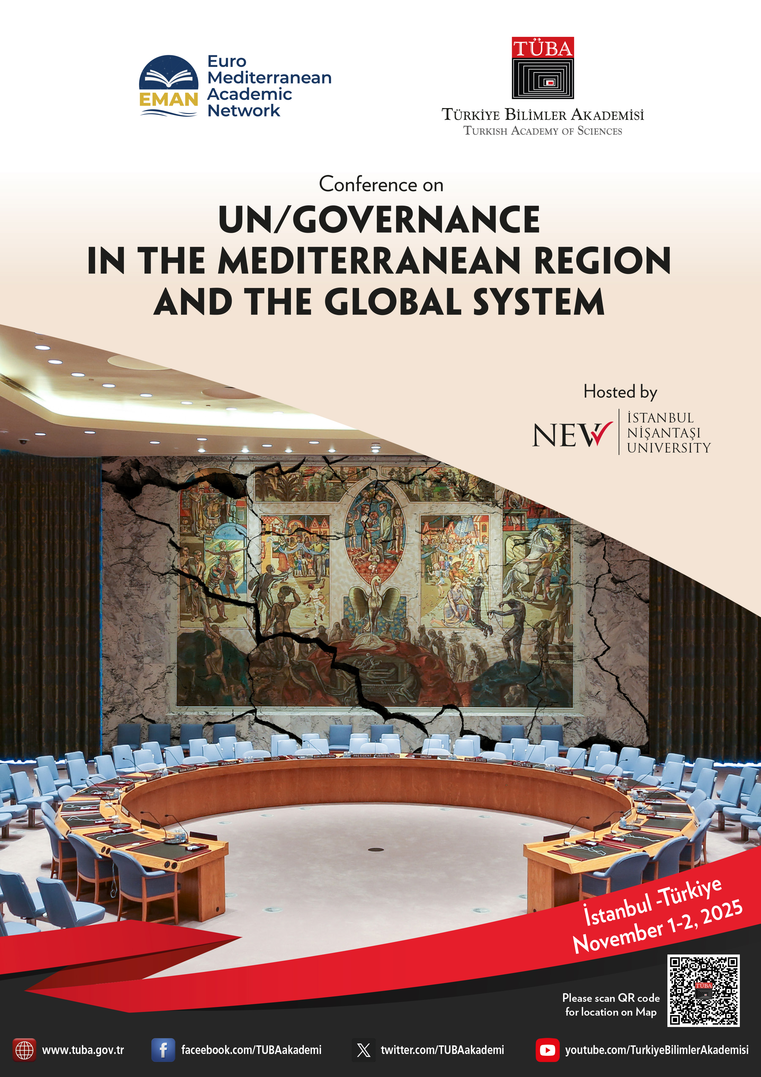 TÜBA Uluslararası İlişkiler Çalışma Grubu ve Akdeniz Akademileri Birliği’nin (The Euro-Mediterranean Academic Network-EMAN) iş birliğiyle düzenlediği “Akdeniz Bölgesinde ve Küresel Sistemde Yönetişim/Yönetişimsizlik” (Un/Governance in the Mediterranean Region and the Global System) Konferansı 1-2 Kasım 2025 tarihlerinde Nişantaşı Üniversitesi’nde gerçekleştirilecek.