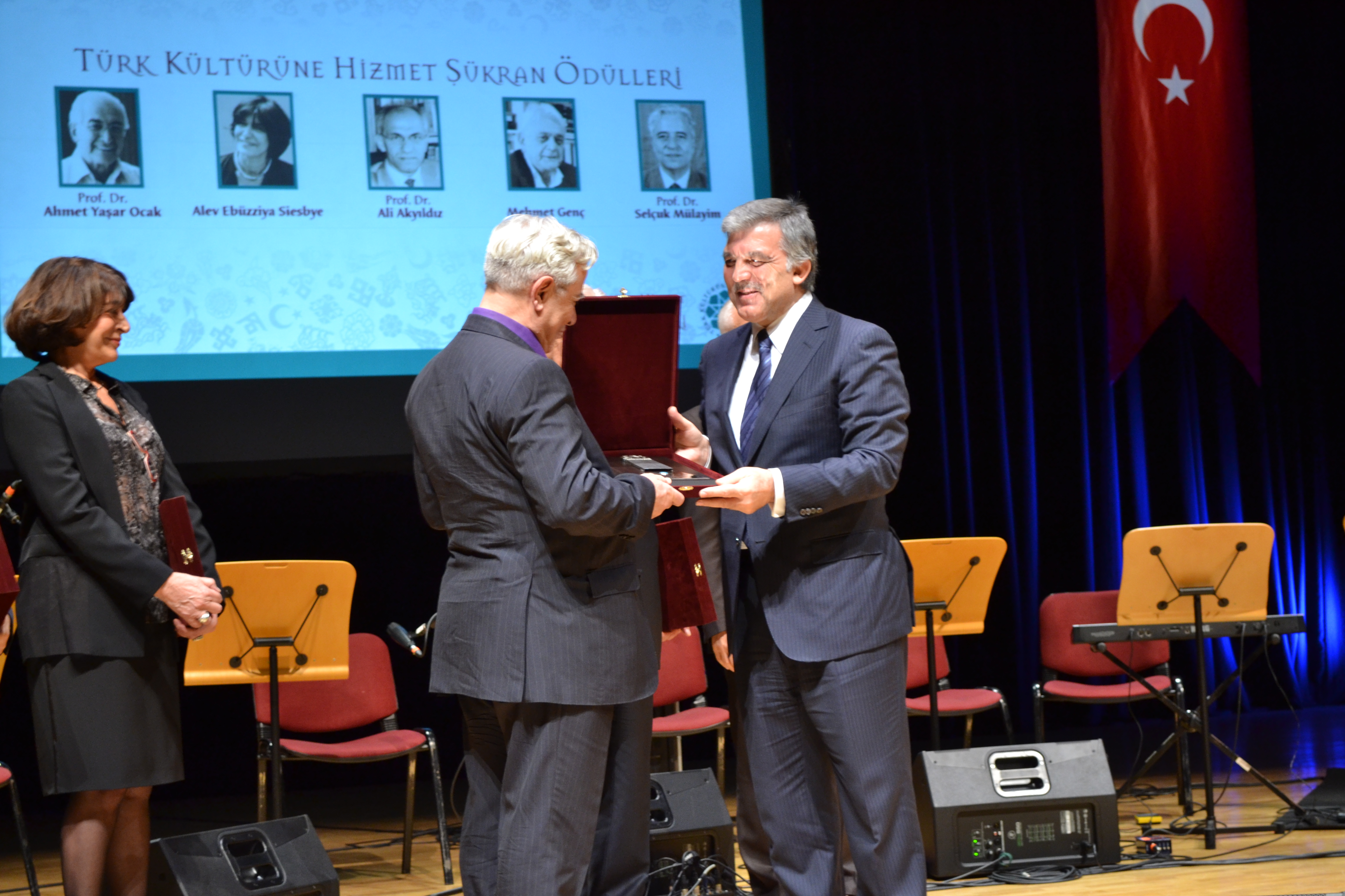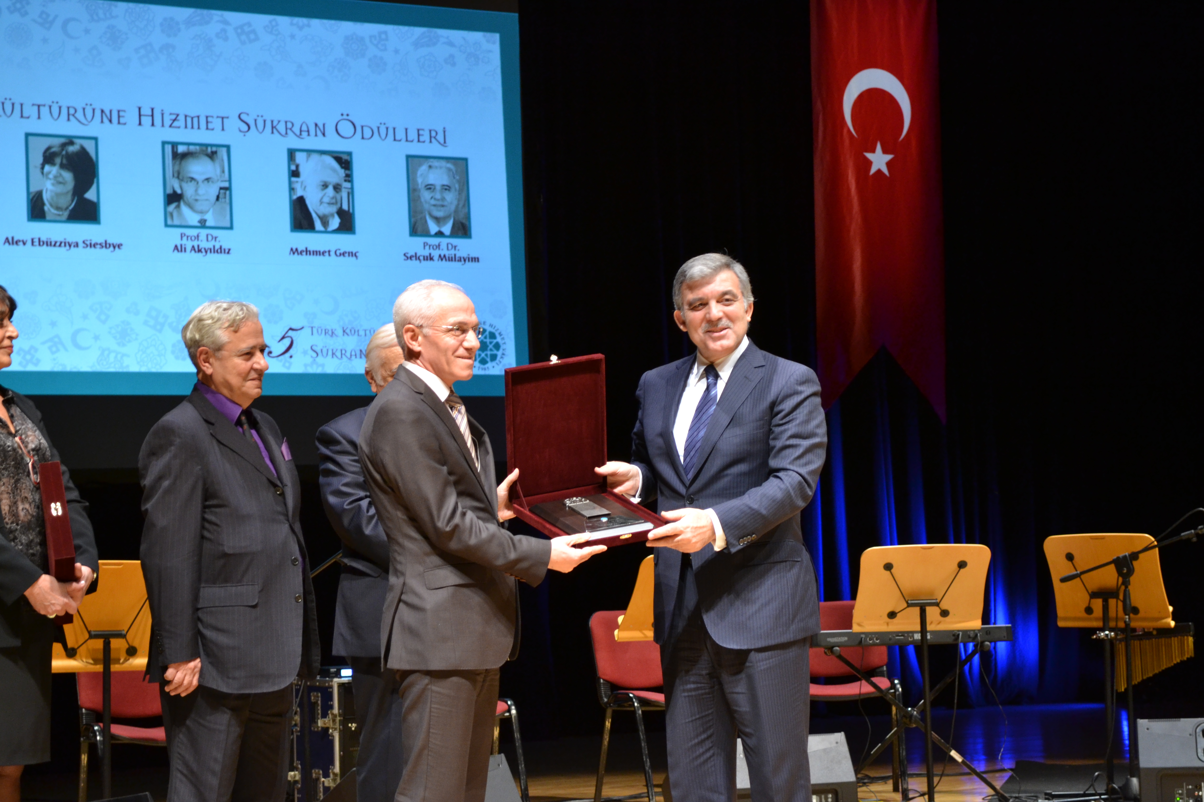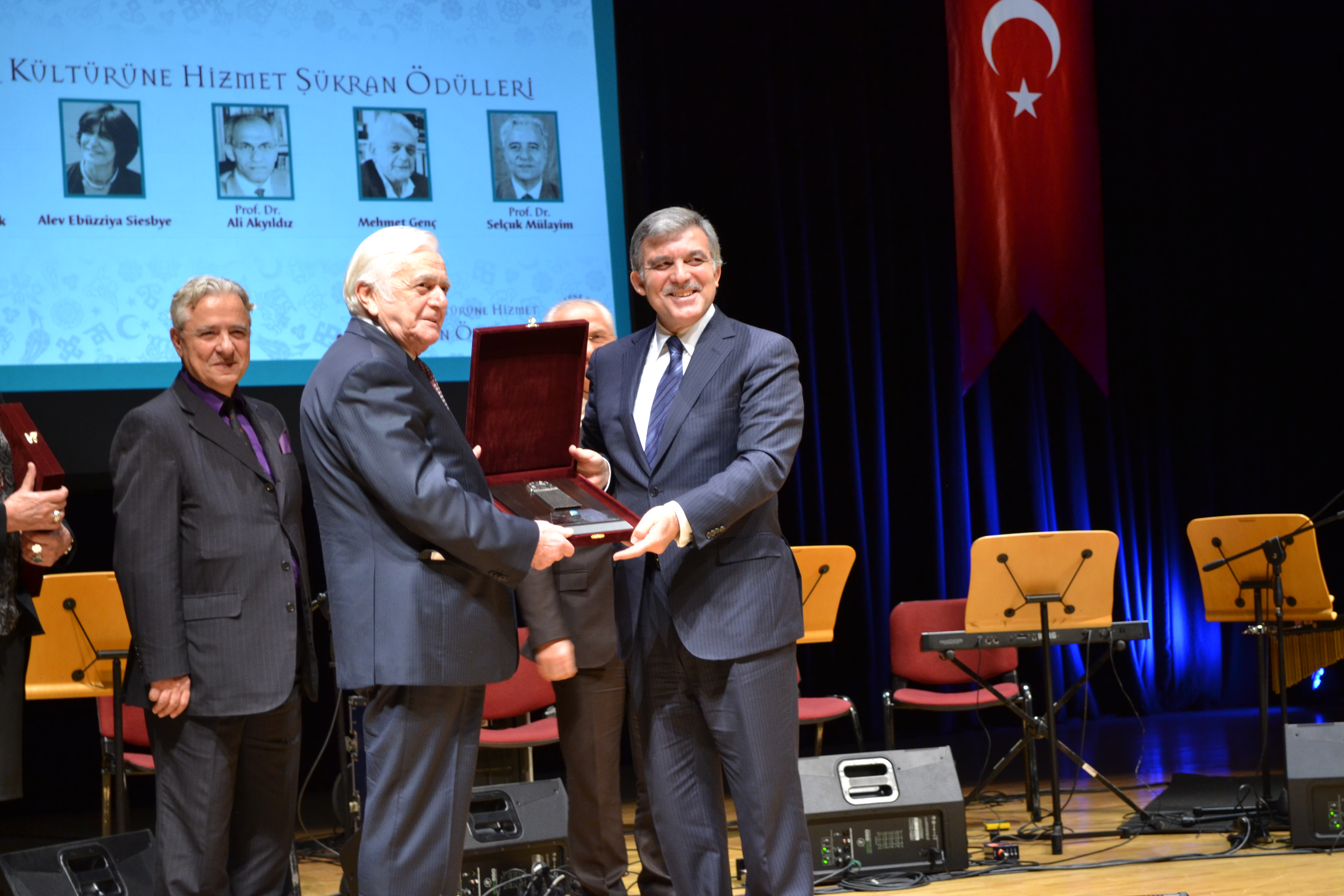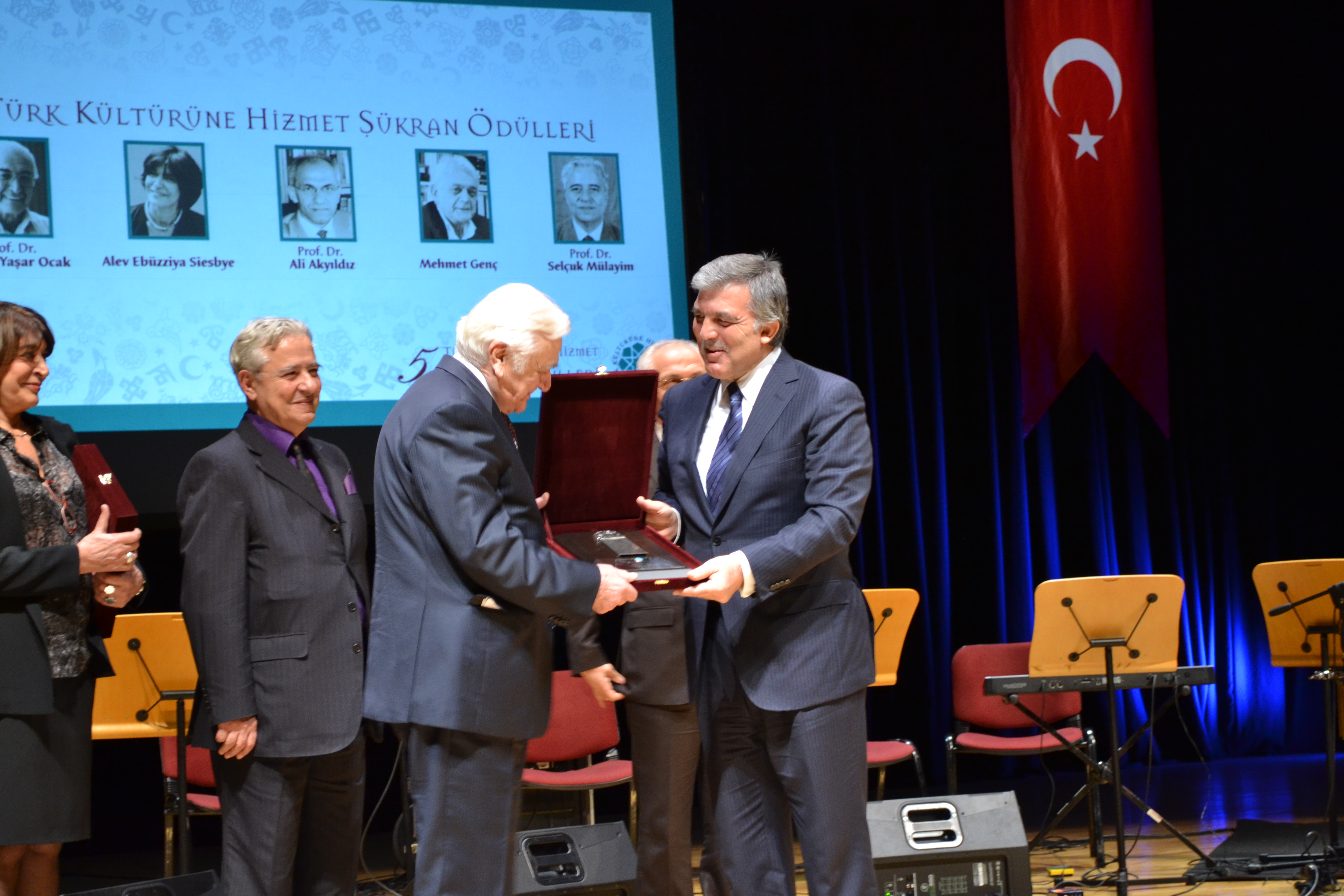 The ceremony was held in Cemal Resit Bey Concert Hall in Istanbul on 5 January 2016. The Selection Committee determined by the Foundation of Service to the Turkish Culture board granted the fifth Service to Turkish Culture Gratitude Award. The 11th President, Abdullah Gül presented the awards to Alev Ebbüziya, Prof. Dr Ali Akyıldız, Mehmet Genç, Prof. Dr Selçuk Mülayim and to Prof. Dr Fahameddin Başar on behalf of Prof. Dr. Ahmet Yaşar Ocak who was unable to make it to the ceremony.