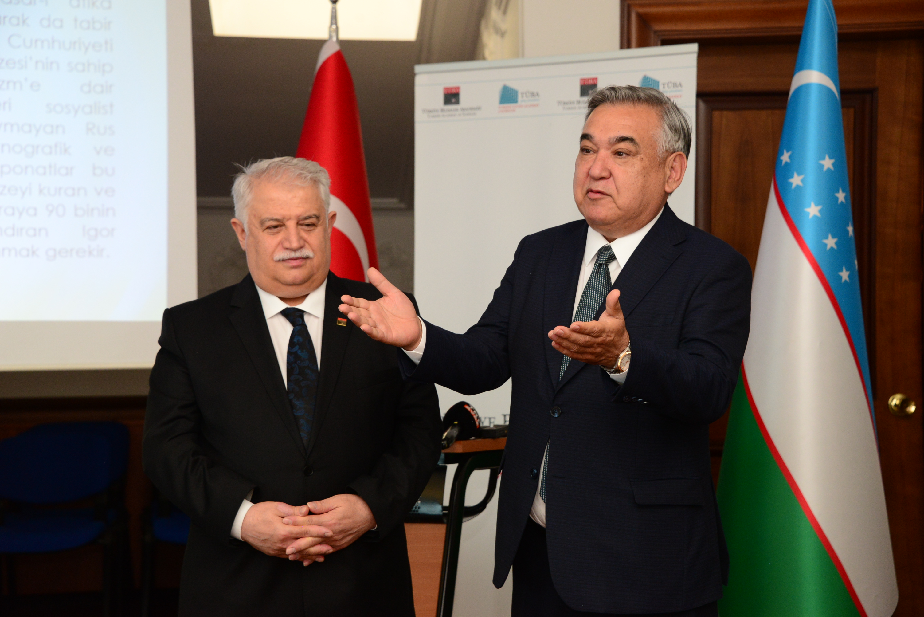 The program, which was attended by TÜBA Council members, opened with the speeches of Alişer Azamhocayev, Ambassador of Uzbekistan to Ankara, and Prof. Muzaffer Şeker, President of the Academy, and continued with a presentation by historian Dr. Ali İhsan Çağlar.