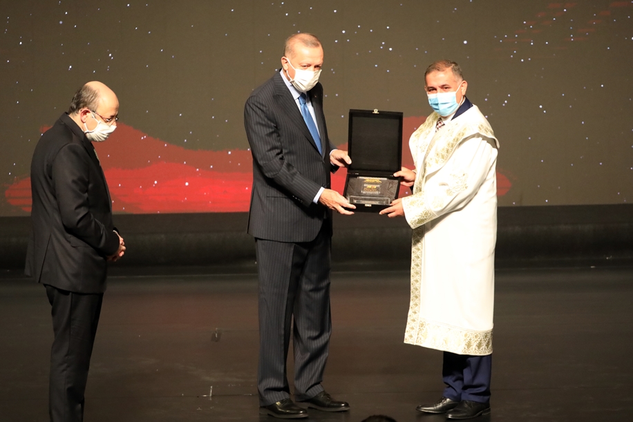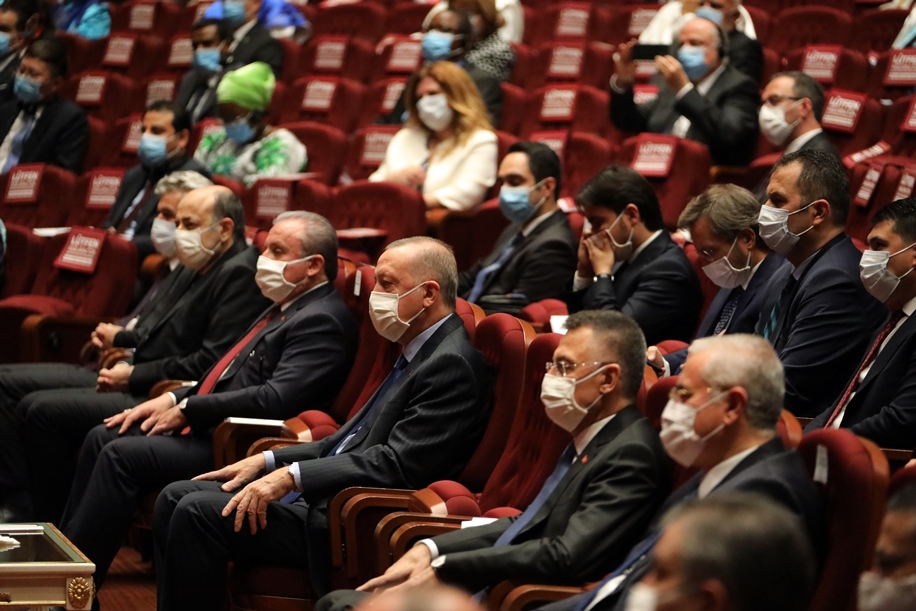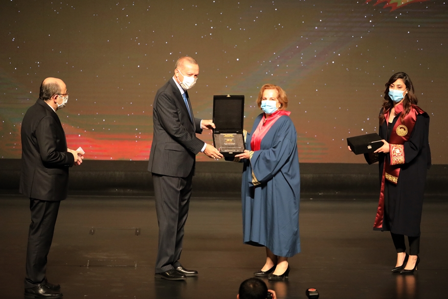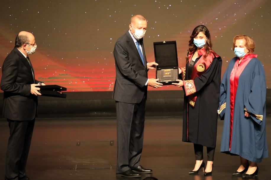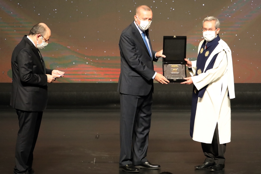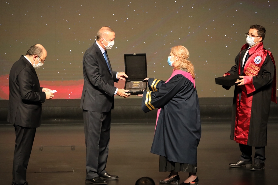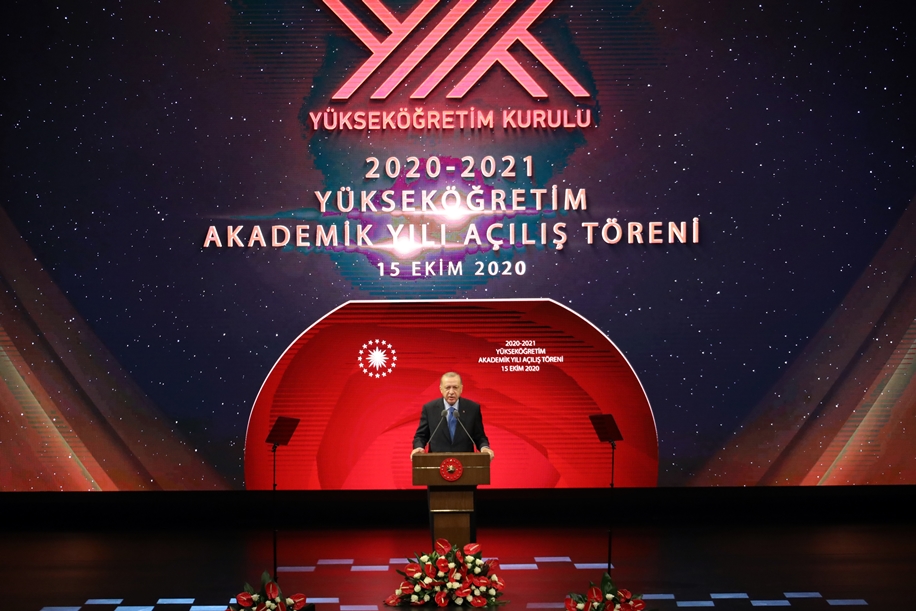 Cumhurbaşkanı Recep Tayyip Erdoğan ise konuşmasına yeni akademik yılının, hayırlara vesile olmasını dileyerek başladı. Koronavirüs salgını sebebiyle bir hayli zor şartlarda yürütülüyor olsa da akademik eğitimin kesintisiz devam etmesinin önemini vurgulayan Cumhurbaşkanı Erdoğan, uzaktan eğitim tecrübesinin değerli olduğunu ancak örgün eğitimin yerini tutmayacağını belirterek, "İnşallah mümkün olan en kısa sürede, diğer eğitim öğretim kademelerinde olduğu gibi yükseköğretimde de yüz yüze eğitim öğretimi başlatmayı hedefliyoruz." diye konuştu.