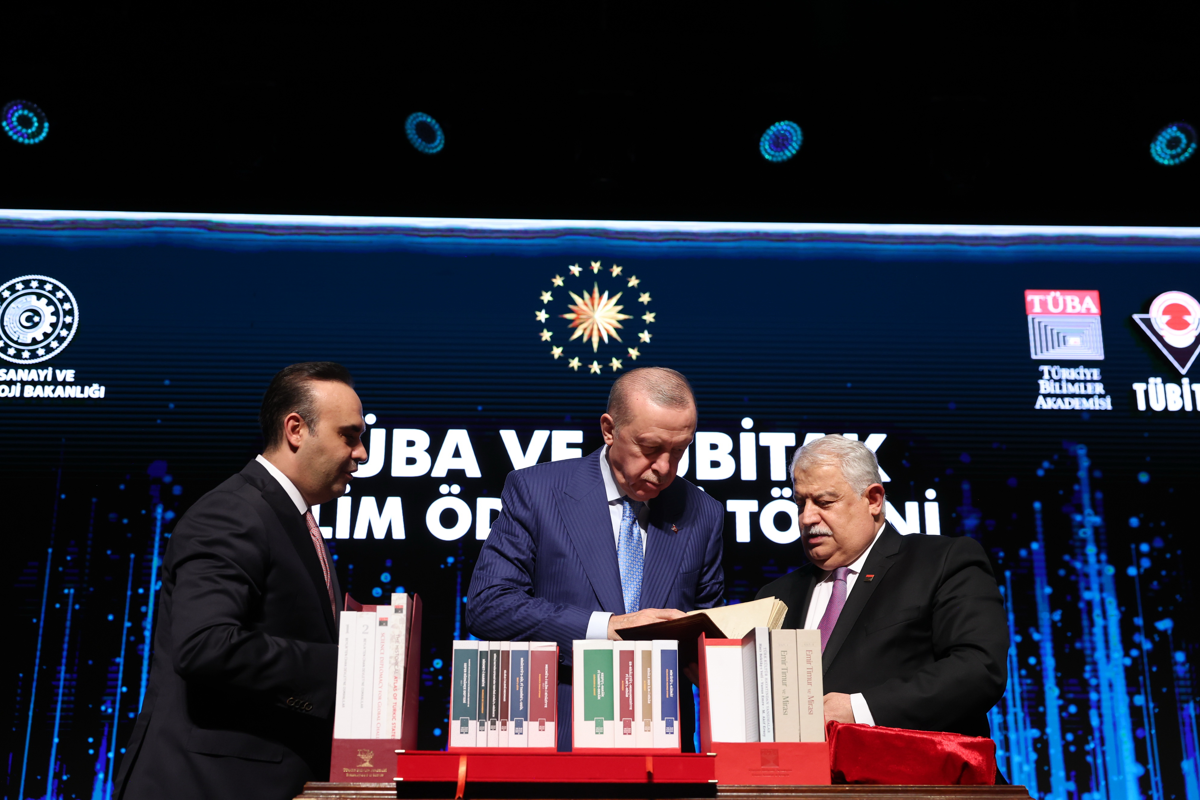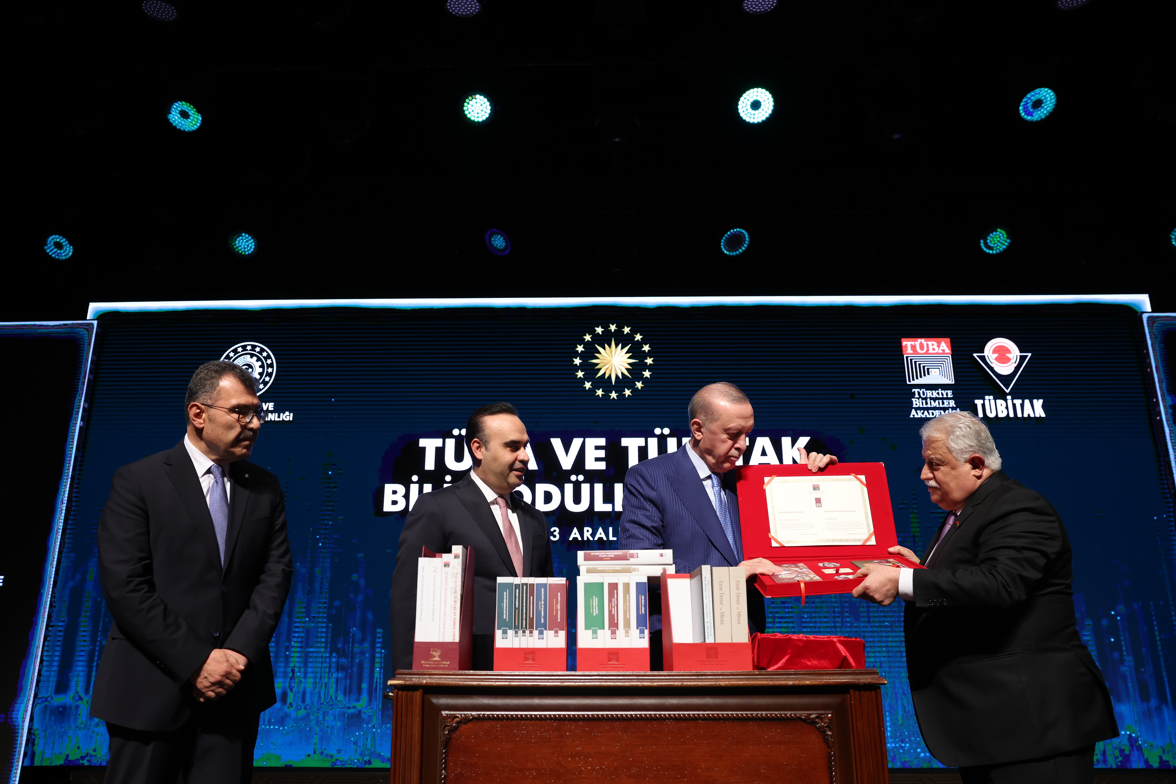 Cumhurbaşkanı Erdoğan, TÜBA ve TÜBİTAK Bilim Ödülleri sahibi akademisyenlere ödüllerini bizzat takdim etti, ödüle layık görülen bilim insanlarıyla günün anısına hatıra fotoğrafı çektirdi.
