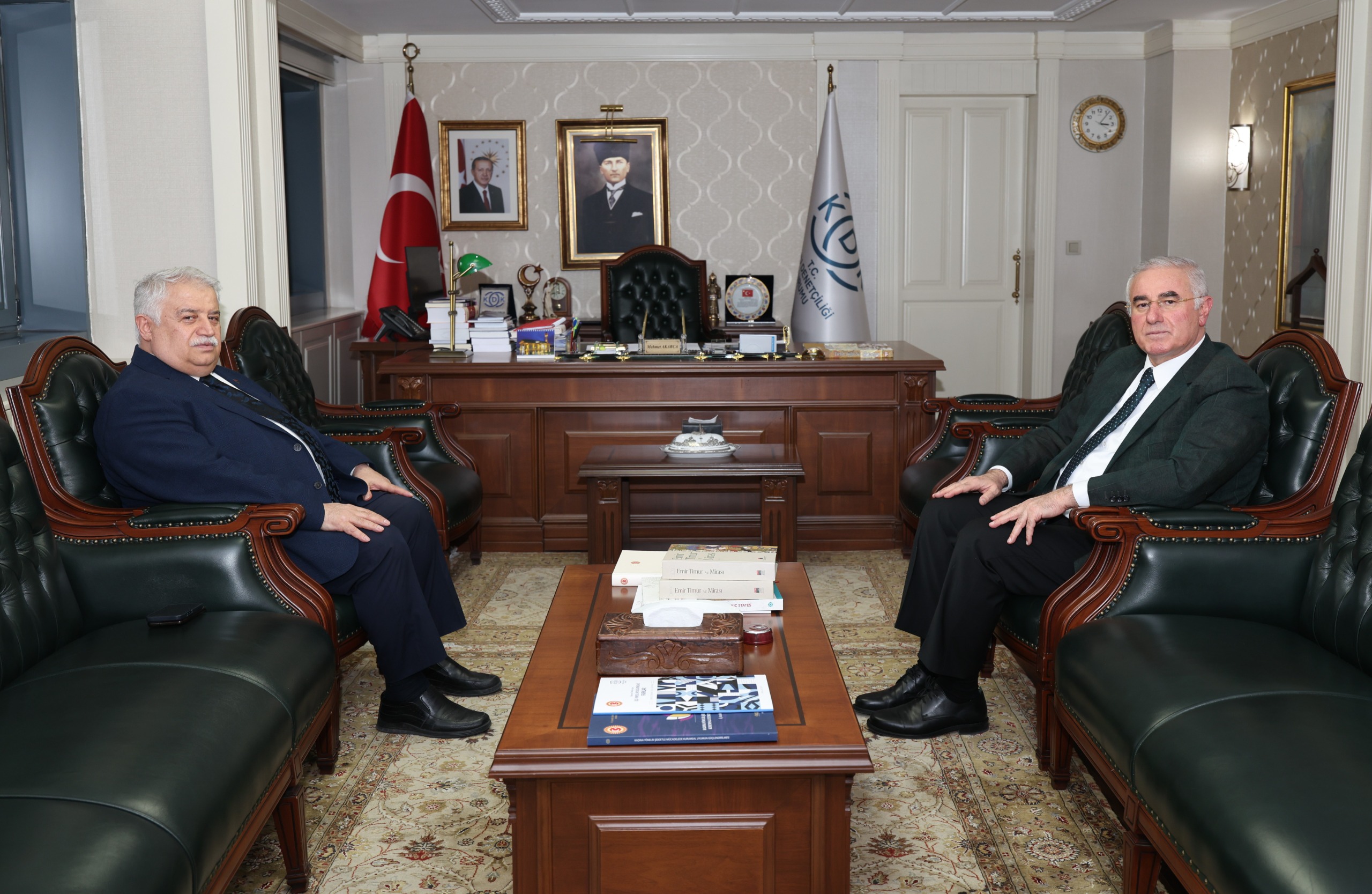 TÜBA Başkanı Prof. Dr. Muzaffer Şeker Kamu Başdenetçisi Mehmet Akarca’yı makamında ziyaret etti. Kamu Denetçiliği Kurumu’nda gerçekleştirilen görüşmede bilim, hukuk ve dijitalleşme alanlarındaki güncel gelişmeler üzerine değerlendirmelerde bulunuldu.