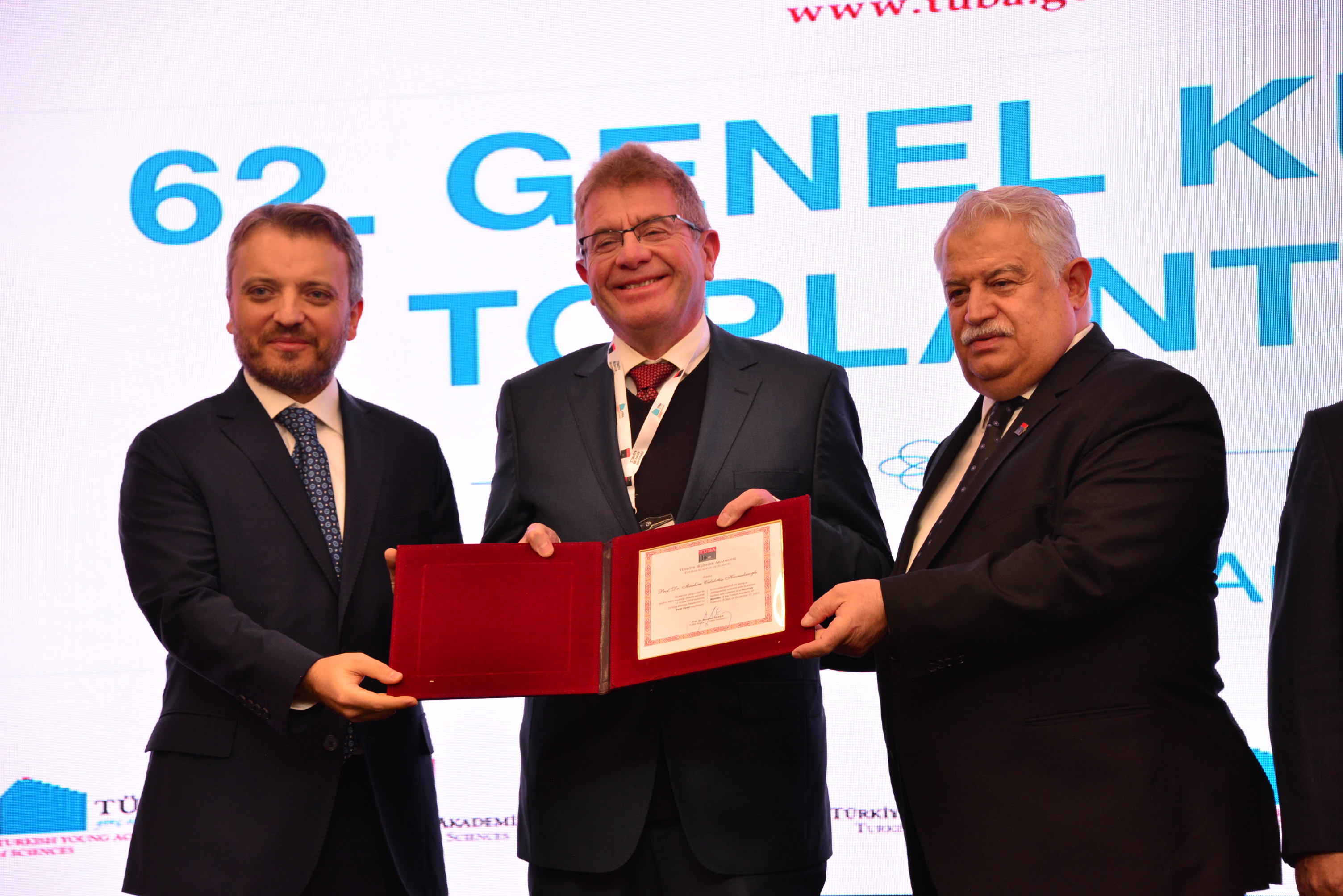 Akademi üyelerine berat takdimiAkademi Konseyi tarafından seçilen Prof. Dr. Zühtü Arslan, Prof. Dr. Mehmet Akif Aydın, Prof. Dr. Ömer Demir, Prof. Dr. İbrahim Celalettin Haznedaroğlu, Prof. Dr. Mehmet İpşirli, Prof. Dr. Mehmet Öcal Oğuz, Prof. Dr. Ömer Özkan’a Şeref Üyesi beratları, 61. Genel Kurul’da seçilen Prof. Dr. Sezgin Bakırdere, Prof. Dr. Taşkın Kavzoğlu ve Prof. Dr. Nurettin Şahiner’e Asli, Prof. Dr. Ahmet Can Altunışık’a ise Asosye Üye beratı takdim edildi. Prof. Dr. Asif Šabanović, Prof. Dr. Zhichuan Jason Xu, Emeritus Prof. Datuk Dr. Osman Bakar, Prof. Dr. István Vasary’ye ise beratlarının büyükelçilikler aracılığıyla tevdi edileceği bildirildi. Genel Kurul, TÜBA Başkanı Prof. Dr. Muzaffer Şeker’in genel kurul sunumu, görüşler ve temennilerin iletilmesinin ardından sona erdi.