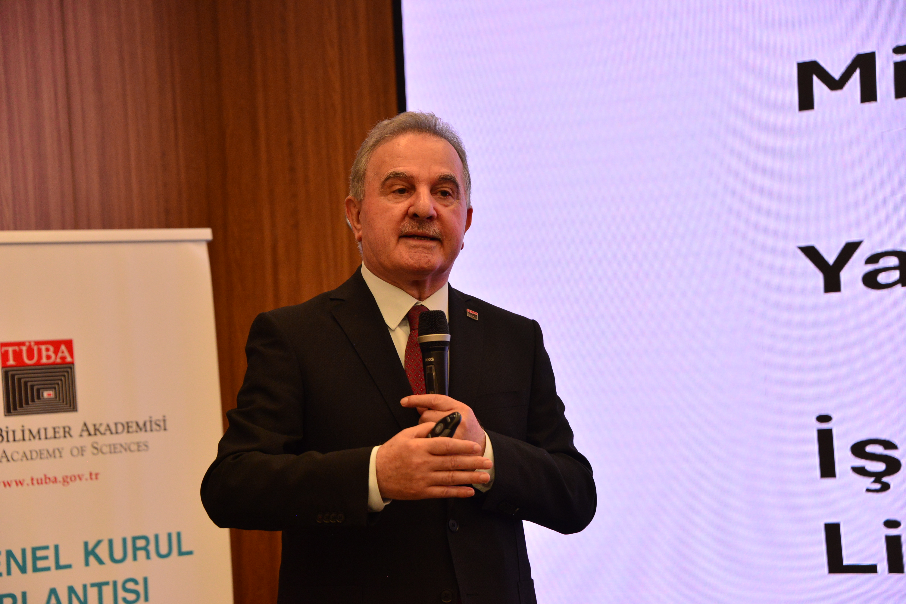 Prof. Elmas'tan eğitimden yapay zekâya, Prof. Kavzoğlu’ndan coğrafi uzamsal yapay zekâ çevre ilişki Genel Kurul KonferansıTÜBA Asli Üyesi ve Kocaeli Sağlık ve Teknoloji Üniversitesi (KOSTÜ) Rektörü Prof. Dr. Muzaffer Elmas “Yükseköğretimde Değişim ve Yapay Zekâ” başlıklı konuşmasında dünyanın küresel iklim krizi, dijital devrim ve jeopolitik kırılmaların iç içe geçtiği karmaşık ve zorlu bir döneme girdiğini ifade etti. “Yıllardır “geleceğin dünyası” olarak tanımlanan bu yeni çağ artık gelmiş durumda. En az otuz yıl süreceği öngörülen bu dönemde, her alanda köklü değişim kaçınılmaz. Bu değişimden en fazla etkilenecek kurumlardan biri ise üniversiteler olacak.” dedi.