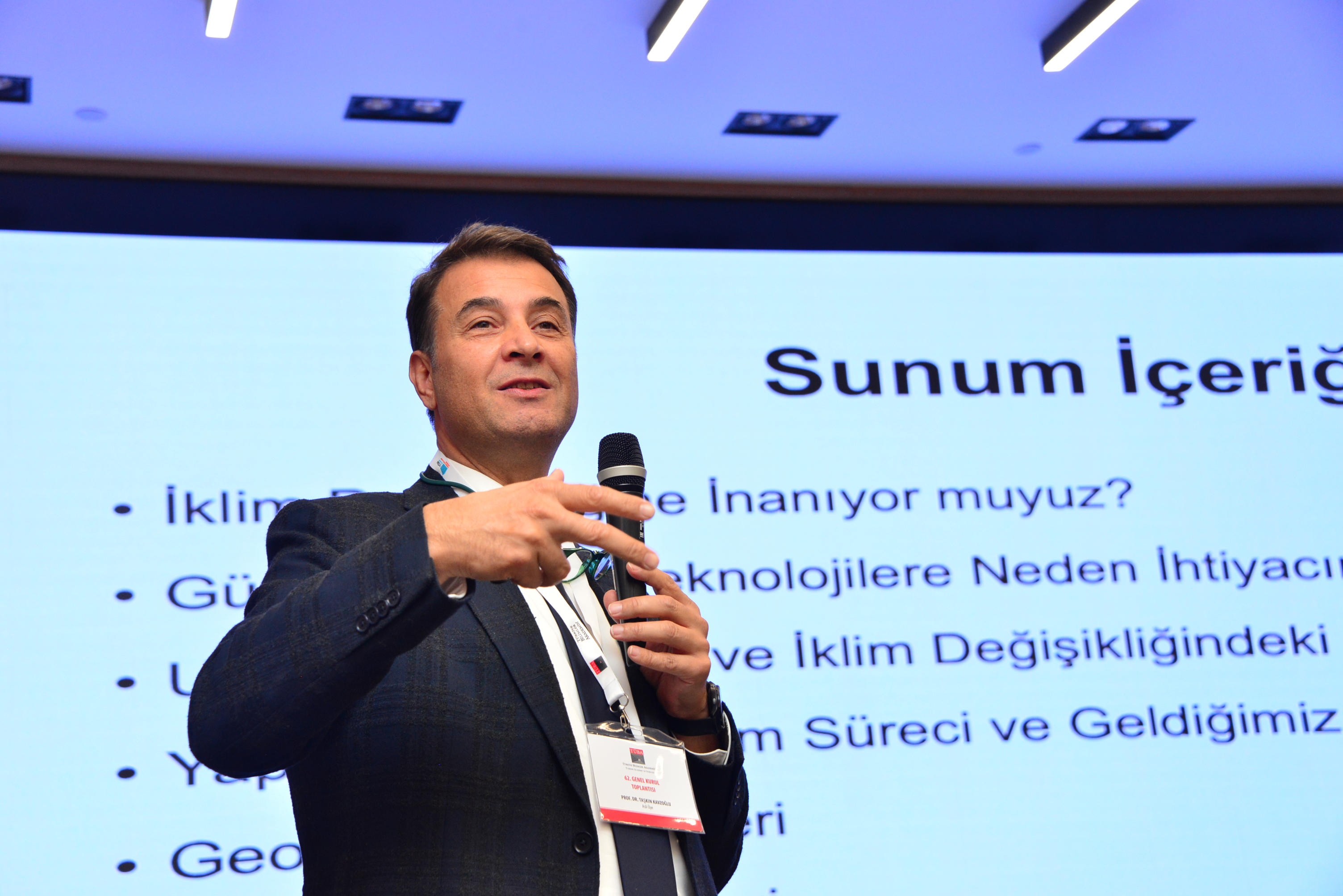 “GeoAI ile İklim Değişikliği İzlemede Yeni Ufuklar: Uzaktan Algılama ve Yapay Zekâ Entegrasyonu” adlı genel kurul konferansı veren TÜBA Asli Üyesi ve Gebze Teknik Üniversitesi Öğretim Üyesi Prof. Dr. Taşkın Kavzoğlu iklim değişikliğinin, dünyanın karşı karşıya olduğu en acil ve karmaşık küresel sorunlardan biri olduğunu, çevre ve biyoçeşitlilik üzerindeki olumsuz etkilerinin her geçen gün arttığını söyledi. Bu değişikliği anlamak, etkilerini izlemek ve buna uyum sağlamak için geleneksel yöntemlerin değil yenilikçi teknolojilerin kullanılması gerektiğinin altını çizdi. Coğrafi Yapay Zekâ’nın (GeoAI) bu anlamda, uzaktan algılama ve yapay zekânın sinerjik birleşimiyle, iklim değişikliği izleme konusunda devrim niteliğinde yeni ufuklar açtığına dikkat çekti. “GeoAI, coğrafi bilgi sistemleri, uzaktan algılama, makine öğrenmesi ve derin öğrenme tekniklerini bir araya getirerek mekânsal/uzamsal verilerin analizinde yüksek doğruluk ve otomasyon sağlıyor. Uzaktan algılama teknolojilerinin sağladığı geniş veri kapsamı ile yapay zekânın yüksek işlem gücü birleştiğinde, çevresel sistemlerin dinamikleri daha iyi anlaşılmakta ve sürdürülebilir kalkınma politikaları için bilimsel karar destek mekanizmaları geliştirilebiliyor. Bu sayede atmosferik bileşenler, yüzey sıcaklıkları, bitki örtüsü değişimleri, buzulların erimesi, kuraklık ve sel gibi iklimle ilişkili süreçlerin zamansal ve mekânsal dinamikleri daha ayrıntılı şekilde ortaya konuluyor. GeoAI sayesinde, değişen iklimimizi daha iyi anlama, etkilerini hafifletme ve gezegenimiz için daha dayanıklı bir gelecek inşa etme imkânı doğdu.” dedi.