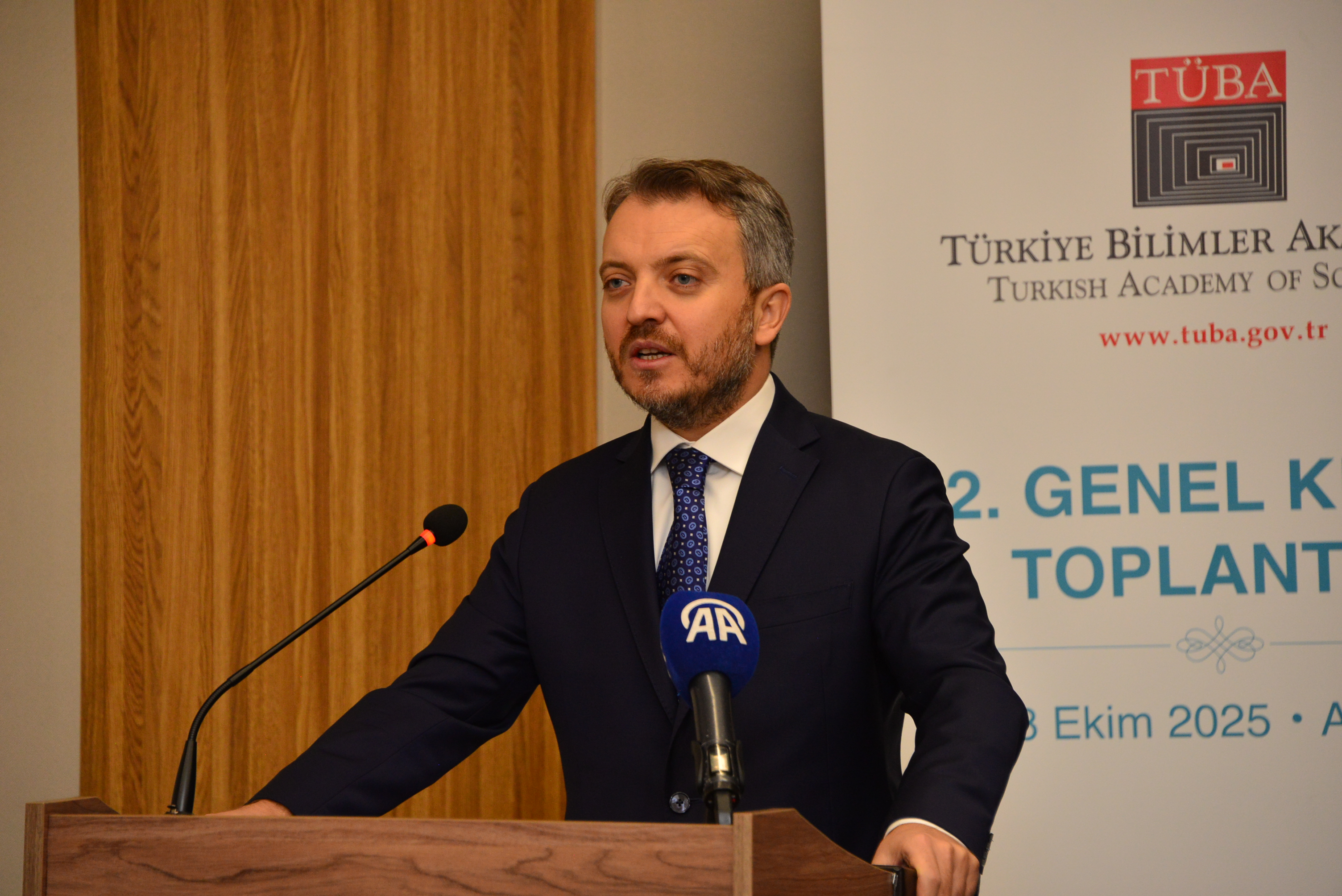 Akademinin yalnızca bilimsel üretim kapasitesiyle değil, aynı zamanda bilimsel etik, akademik özgürlükler ve toplumsal sorumluluk konularındaki hassasiyetleriyle de örnek bir kurum olduğunun altını çizdi. Akademi’nin bilimin sadece ekonomik büyüme ve teknolojik ilerleme için değil, aynı zamanda insanlığın ortak vicdanını ve ahlaki duruşunu temsil eden bir alan olduğunu her vesileyle hatırlatmasının çok önemli olduğunu belirtti ve “Bu çerçevede, Türkiye Bilimler Akademisi’nin Filistin’de yaşanan insani dram karşısında uluslararası bilim camiasına yaptığı çağrılar, bilimin evrensel değerlerini koruma konusundaki kararlılığını bir kez daha gösterdi.” dedi. Konuşmasını TÜBA’ya Millî Teknoloji Hamlesi’ne desteği ve Türkiye’nin stratejik hedeflerine sağladığı katkılar dolayısıyla teşekkür etti.