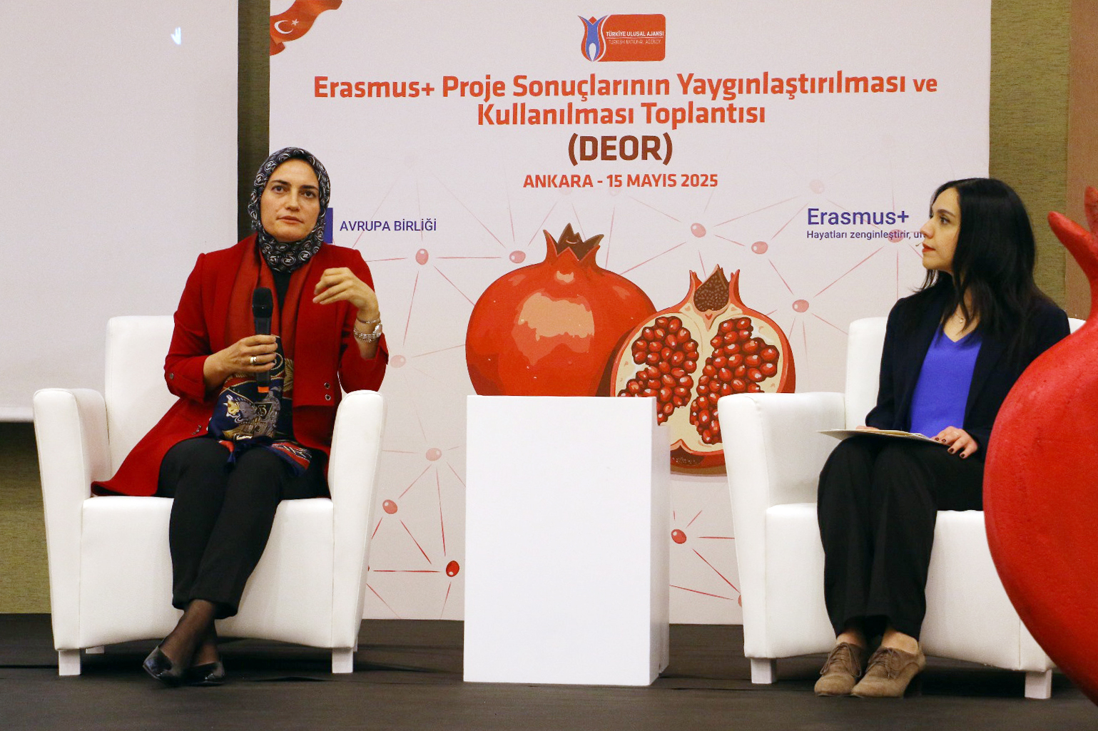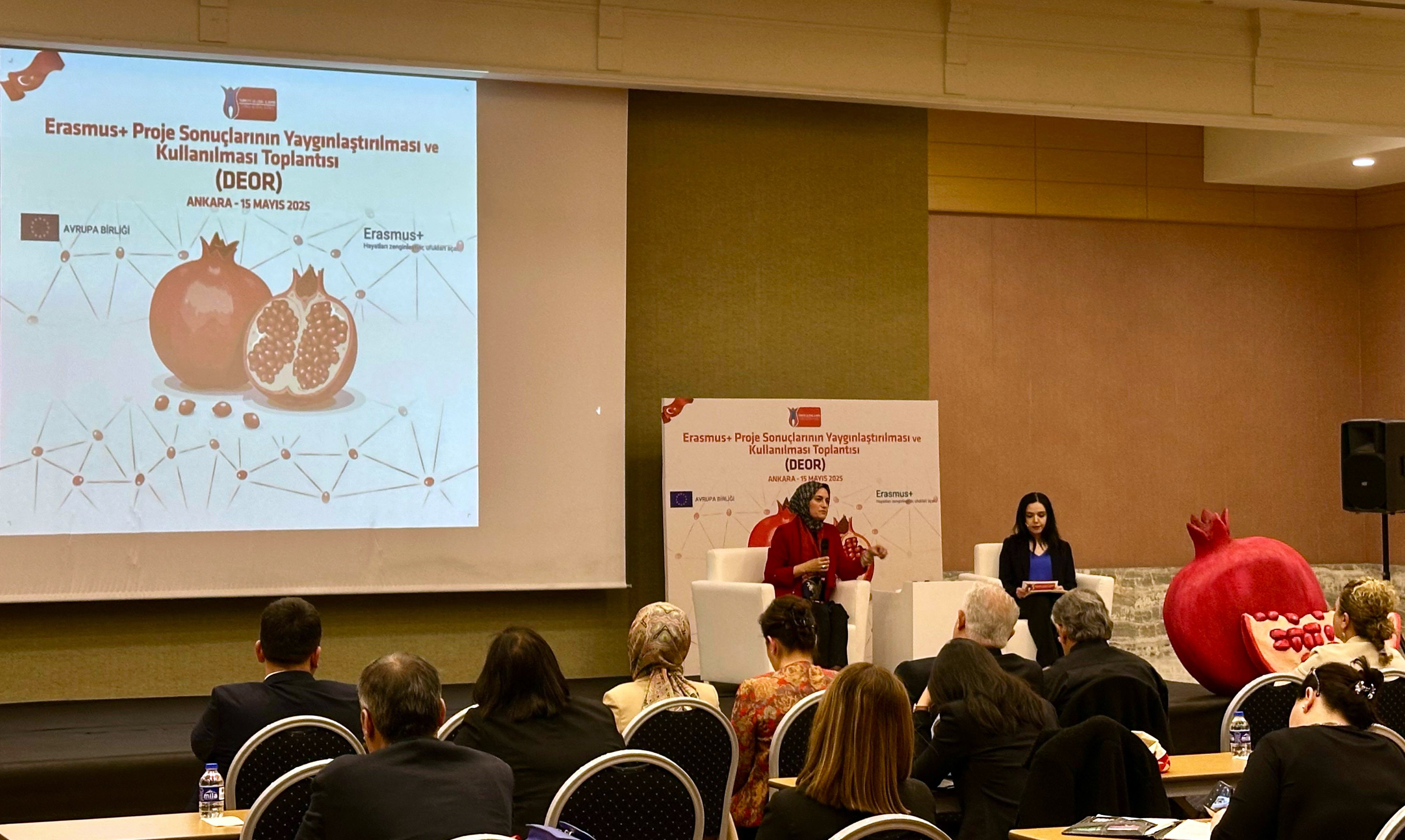 Erasmus+ Programı’nın ana hedeflerinden biri olan “proje sonuçlarının yaygınlaştırılması ve kullanılması (dissemination and exploitation of results, DEOR)” doğrultusunda, toplantıda kamu kurumları, üniversiteler ve teknokentlerden yaklaşık 80 temsilci yer aldı Katılımcılara Erasmus+ Programında "DEOR" kavramı üzerine bilgi "nar" metaforu ile tanıtıldı.