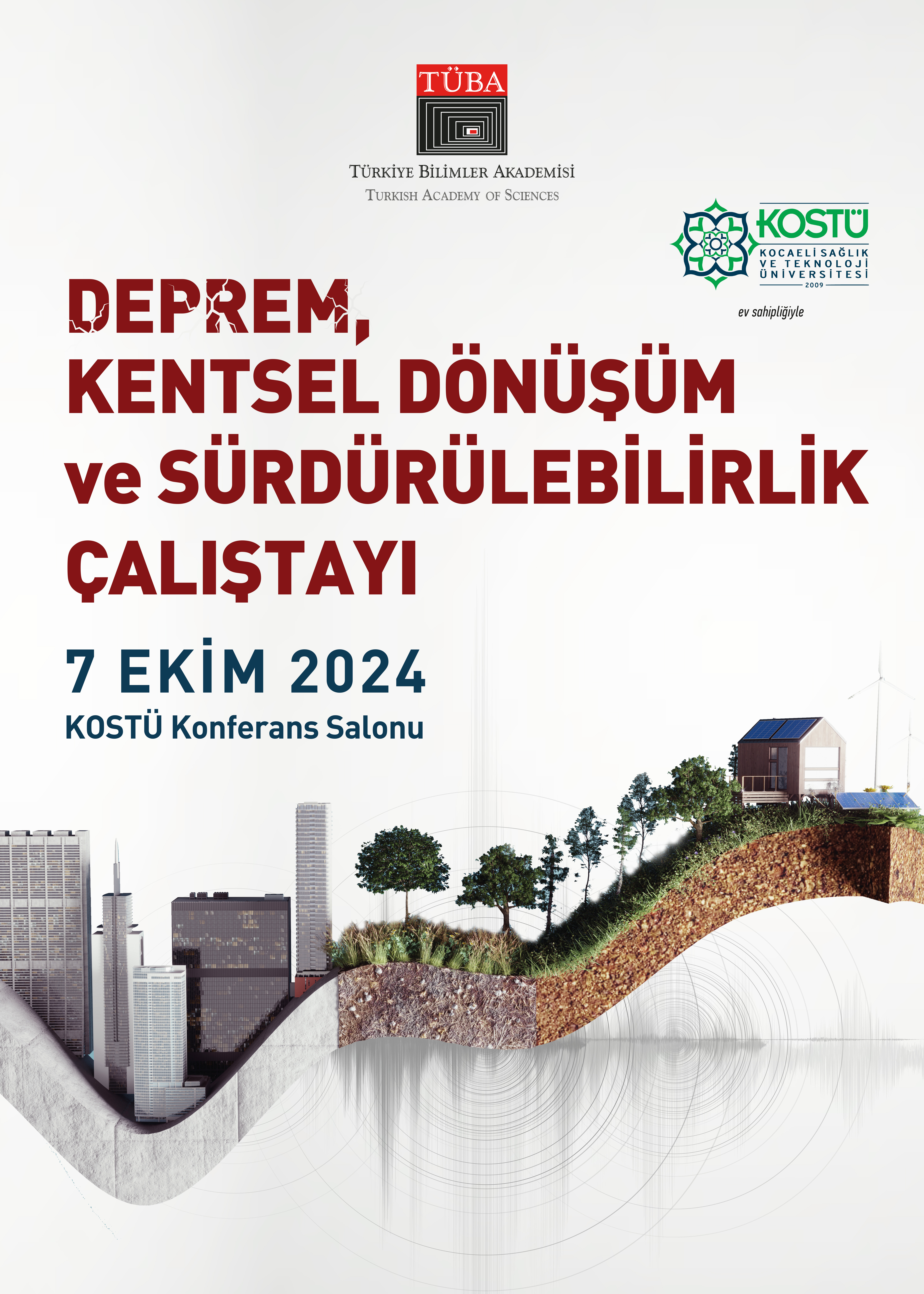 TÜBA Çevre, Biyoçeşitlilik ve İklim Değişikliği Çalışma Grubu deprem riski altındaki bölgelerde şehirlerin güvenli, yaşanabilir ve sürdürülebilir bir şekilde yeniden yapılandırılması hedefiyle Kocaeli Sağlık ve Teknoloji Üniversitesi ev sahipliği ile 7 Ekim 2024 tarihinde “Deprem, Kentsel Dönüşüm ve Sürdürülebilirlik Çalıştayı” düzenliyor.