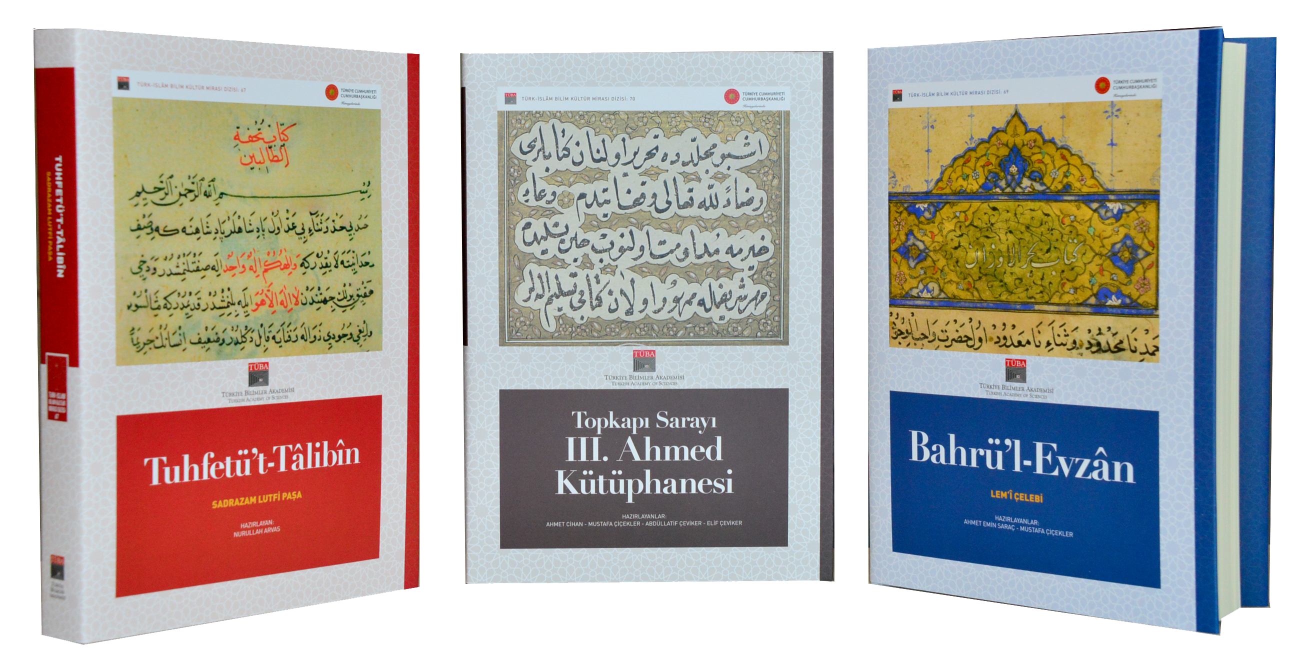 Osmanlı ilim geleneğini yansıtan Tuhfetü’t-Tâlibîn, Sadrazam Lütfi Paşa tarafından kaleme alınmış bir ilmihal eseri olarak dönemin dini hayatına ışık tutuyor. Klasik Türk edebiyatı alanında önemli bir boşluğu dolduran Bahrü’l-Evzân, aruz vezni üzerine Türkçe yazılmış en kapsamlı eserlerden biri olarak dikkat çekiyor ve bu alandaki literatüre önemli katkı sağlıyor. Proje kapsamında yayımlanan Topkapı Sarayı III. Ahmed Kütüphanesi adlı çalışma ise Osmanlı’da kitap/kütüphane kültürü, kitap dolaşımı ve okuma alışkanlıklarına dair zengin veriler sunarak tarih ve kitabiyât araştırmalarına yeni bir perspektif kazandırıyor.
